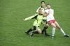 Cennou remízu si připsali stříbrští fotbalisté… Úvod zápasu přinesl oboustranně opatrný fotbal. První ohrožení domácí branky přinesla až 10. minuta, kdy nádherně z otočky vypálil holýšovský kapitán Tlustý, ale naštěstí mířil jen do míst, kde byl připravený Cipra. Stříbrský gólman si poradil i s lehkou tečí kapitána hostů v 16. minutě. Na druhé straně musel zasahovat po přímém kopu Zámečka brankář Holýšova Janča. Ve 25. minutě, opět po přímém kopu, předvedl Janča vynikající zákrok, když vytáhl hlavičku Demjana mimo tyče. Oba týmy se do zakončení dostávali především po standardních situacích. Ve 31. minutě prosvištěl míč po rohovém kopu hostů jen těsně kolem Ciprovy branky. Pohlednější a zároveň poslední akcí prvního poločasu byla spolupráce Pelána, Dyka a Ábela, na jejímž konci však slavil úspěch holýšovský gólman.