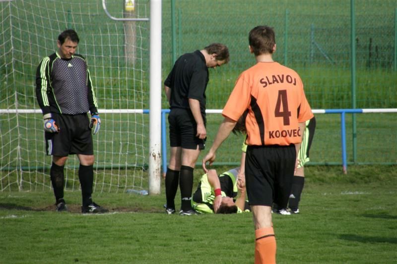 Na půdě favorita sehráli stříbrští fotbalisté vyrovnaný zápas, který rozhodla jediná branka… O tom, že hráči Baníku nepřijeli jen bránit, přesvědčila diváky hned úvodní minuta. Ábel vymotal kolovečské obránce, předložil Pelánovi, který však pálil nad branku domácích. Ve 4. minutě na druhé straně namazal Hřebík Černohorskému, ale jeho pokus Cipra reflexivně vyrazil. V 7. minutě svedl Demjan sprinterský souboj s domácím Šperlem a stihl odvrátit míč alespoň na roh. Z protiútoku včas zakročil domácí kapitán Vlček před rozběhnutým Ábelem. Ve 12. minutě se domácí dočkali úvodní branky. První střelu Bittengla ještě Cipro vyrazil, nedůraznost stříbrských obránců při odkopu však tentýž hráč využil a napodruhé poslal míč za Ciprova záda - 1:0. Ve 20. minutě prošel jako nůž máslem stříbrskou obranou Parlásek, ale v zakončení selhal. 25. minuta mohla přinést vyrovnávací branku, ale Zámečkovu hlavičku po rohovém kopu vykopl z brankové čáry kolovečský Baxa. Ve 29. minutě předvedli stříbrské duo Jareš s Pelánem ukázkovou kombinaci, ale Pelánovo zakončení vytáhl Míčka alespoň na břevno. Ještě před koncem prvního poločasu skvěle vystřelil Dyk z poza obránců, ale Míčka ještě lépe zasáhl a udržel domácím vedení.