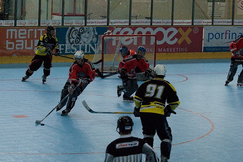 V prvním zápase nastoupili naši kluci proti Panterům z Havířova (vítěz playoff 2009 1.ligy). Už po 5 minutách za stavu 4:0 si přáli, aby byl konec. Celý zápas byla jedna velká lekce inline hokeje. Pouze ve druhé čtvrtině dokázali jakžtakž držet krok ze soupeřem. Havířovští měli hru zcela pod kontrolou.