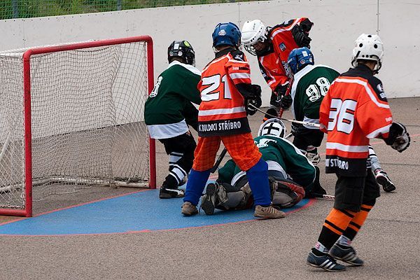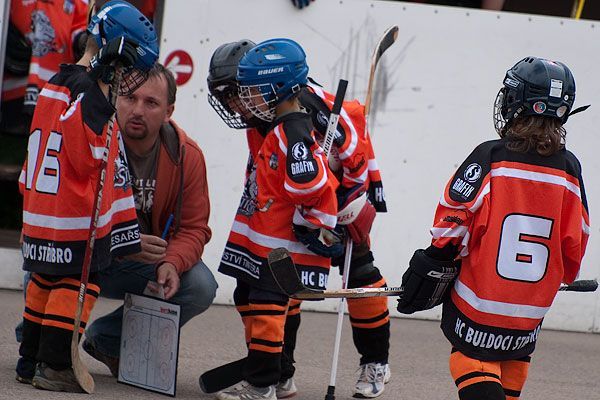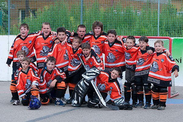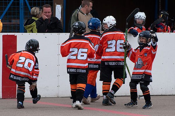 Mladší žáci se zúčastnili prvního hokejbalového turnaje V neděli ráno se přesunula kolona desíti vozidel se sedmnácti hráči ze Stříbra do Horní Břízy, která hostila turnaj mladších žáků v hokejbalu. Po páteční debaklu s Tachovem (10:0) nastupovali Buldoci na hřiště s daleko větším nasazením. V prvním zápase nastoupili proti Třemošné, která zaskočila naše hráče s trochu přerostlým brankářem (11 let - cca 170 cm :-( ). Přesto první třetina byla poměrně vyrovnaná a Buldoci se snažili srovnat jednobrankové manko. Bohužel ve chvíli, kdy na konci přesilovky, zapomněli na vracejícího se soupeře a inkasovali další gól. Ve třetí třetině si opět dokázali vytvoři tlak, ale vždy narazili na Golema v brance. Pouze jedenkrát se jim ho povedlo překonat. Tatran Třemošná - Buldoci Stříbro 4:1 (1:0; 2:0; 1:1) Druhý zápas sehráli domácí hráči z Horní Břízy s Třemošnou, a i když se do vedení jako první dostali právě domácí, v zápase triumfovali hokejbalisti Třemošné. Postupně si vytvořili takový tlak, že nedali Bříze žádnou šanci na změnu v zápase. TJ ZKZ Horní Bříza - Tatran Třemošná 1:7 Ve třetím zápase se mělo rozhodnout o druhém týmu v pořadí. Buldoci moc toužili po vítězství. Na začátku zápasu se dostal soupeř do dvou brankového vedení, to se stříbrským povedlo brzy srovnat a následně se dostali do vedení. Ve druhé třetině byli daleko více tvořiví, přihrávali si a více přitvrdili hru. To někdy vedlo k vyloučení, které je však nezastavilo a postupně si získali čtyřbrankový náskok. V tu chvíli bylo pro trenéra dost obtížné je držet v klidu, při zemi. Kluci už pomalu oslavovali vítězství, o které málem přišli hned během jedné minuty ve třetí třetině, kdy na dvakrát inkasovali. Poté již disciplinovaně dohráli zápas ke své radosti i radosti svých vehementně fandících rodičů. Buldoci Stříbro - TJ ZKZ Horní Bříza 7:4 (3:2, 3:0, 1:2) Radost byla obrovská a většina hráčů to následně oslavila u Meka pořádným hambáčem. Konečné pořadí: 1. Tatran Třemošná Nejlepší hráč turnaje: Václav Polánka (Stříbro)