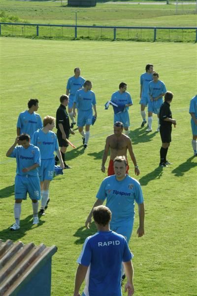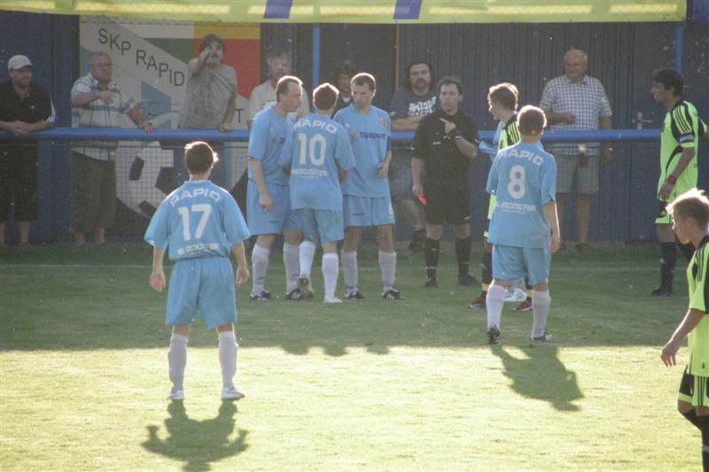 Stříbrští roli favorita nesplnili a přivezli si z Rapidu výprask 4:1 Již ve 2. minutě zahrozil v domácím dresu Hodaň, Šaman mu však nedovolil zakončit. Na druhé straně prošel přes 3 hráče Rapidu Dyk, střela z úhlu však jen proletěla brankovištěm. V 6. minutě utekl stříbrským obráncům opět Hodaň, Cipra však spoluhráče podržel. O minutu později však již kapituloval. Aktivní Hodaň, který ještě na jaře oblékal dres Baníku, utekl svým strážcům i v 7. minutě a tentokrát již nedal Ciprovi šanci - 1:0. V 9. minutě mohli Baníkovci srovnat. Zámeček našel ideálně Demjana, kterého domácí obránci zastavili jen za cenu faulu. Nařízenou penaltu však Jareš neproměnil a nechal tak vyniknout gólmana Štrunce. To se ukázalo jako zlomový moment. Od té chvíle byla hra v režii domácích. Obraně Baníku i nadále zatápěli Hodaň s Chaloupkou. Druhý jmenovaný utekl v 15. minutě Florusovi, nemířil ale naštěstí pro Baník přesně. V další minutě utíkal Florusovi pro změnu Hodaň, byl faulován a stříbrský obránce mohl být rád, že viděl jen žlutou kartu. Další chybu v obraně Baníku již domácí trestali, když v 19. minutě zakončoval Chaloupka 2:0. Do poločasu mohli hráči Rapidu své vedení navýšit, ale Hucl, Faist ani Hodaň své šance neproměnili.