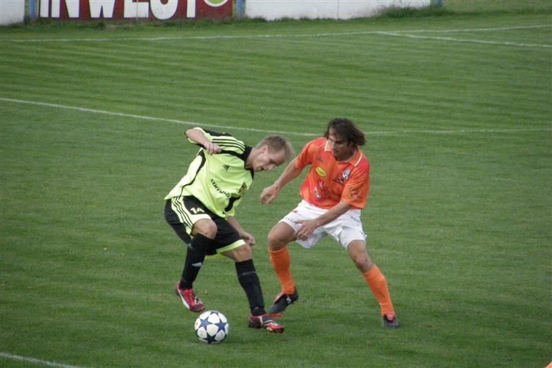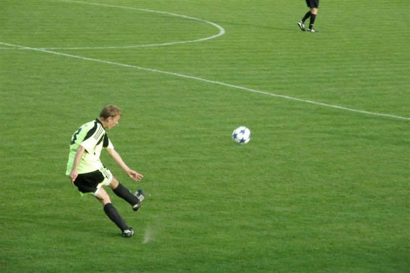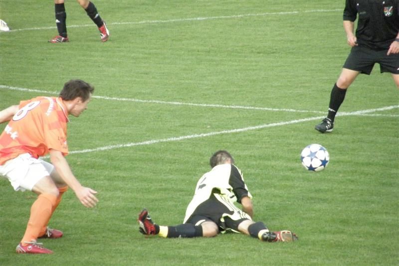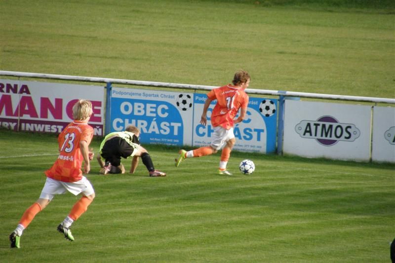 Stříbrští fotbalisté drželi naději na dobrý výsledek jen do 38. minuty… Hned v 1. minutě se po centru Zámečka snažil zakončit Pubrle, ale domácí gólman Bláha včas vyběhl a šanci i za cenu bolestivého střetu zhatil. V 5. minutě rozehráli domácí rychle rohový kop a Kovařík z blízka branku netrefil. V 9. minutě vybídl Zámeček k zakončení Ábela, který však špatně zpracoval a přes obránce již nestihl vystřelit. To bylo ze strany Stříbra na dlouhou dobu vše, naopak domácí sevřeli Baníkovce na jejich polovině. První obrovskou šanci Chrástu zlikvidoval v 18. minutě Cipra, který vyrazil Kovaříkovu hlavičku z malého vápna. Kovařík byl i u další akce domácích, když dostal výborný míč za obranu, ale Cipro jeho střelu opět skvěle kryl. Ve 30. minutě podržel Cipro svůj tým i po střele Sadílka. Štěstí stálo při Baníku i o minutu později, když zazvonila tyč stříbrské branky po hlavičkovém pokusu Roubala. Jednu z mála šancí Baníku přinesla 35. minuta, kdy po kombinaci Petrašky a Jareše zakončoval Ábel. Bohužel pro Baník však nemířil mezi tyče. Domácí tak udeřili z protiútoku. Stružka vybojoval míč v pokutovém území, vrátil nabíhajícímu Roubalovi, který tentokrát již nedal Ciprovi šanci - 1:0. Ve 40. minutě přišla gólová pojistka Chrástu. Souboj ležícího Zaorala s domácím Kovaříkem posoudil hlavní rozhodčí jako nedovolený a domácí kopali penaltu. Zkušený Vaigl se nemýlil - 2:0.