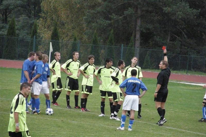 První šanci měli hosté již v úvodních minutách zápasu. Nejprve zahrávali roh, odražený míč postrčil příkosický Krystl Hrubému, který však nedokázal prostřelit obranný val Baníku. Na druhé straně hlavičkoval Dyk jen do rukavic Vaníka a v 5. minutě Jareš ve slibné šanci trefil obránce hostů. V 7. minutě rozehráli rychle hosté přímý kop a Šaman měl plné ruce i nohy práce, aby zabránil Krajdlovi zakončit. Stoper Baníku musel zasahovat i ve 20. minutě, když na domácí branku postupoval Hrubý. Tísněn Šamanem však nezakončil přesně. Ani tato varování domácím nestačila a přišel zákonitě trest. Krystl si nejprve pohrál se Zaoralem, poté si položil i Cipra a bez problémů s míčem doslova dotančil do branky - 0:1. Klíčový okamžik přišel ve 34. minutě. Zaoral fauloval unikajícího útočníka Krystla, viděl červenou kartu a musel předčasně do sprch. Podobný moment přišel i na druhé straně, když byl v průniku sestřelen Ábel, Běle však viděl jen žlutou kartu. Před přestávkou mohl vyrovnat Jareš, ale Vaník nadvakrát zlikvidoval.