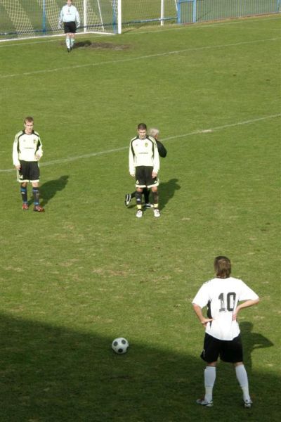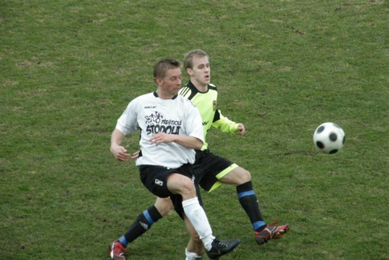 Napravit ostudnou domácí porážku s Rokycany chtěli hráči Baníku v Přešticích, proto trenér Vágner sáhl k několika změnám v sestavě… Úvod zápasu stříbrským hráčům vyšel. Již ve 3. minutě se na hranici pokutového území dobře uvolnil Horáček a střelou k tyči otevřel skóre - 0:1. Vedoucí gól přinesl hráčům Baníku potřebný klid a mohli se soustředit na obrannou hru. Dlouhé minuty se hra odehrávala mezi šestnáctkami obou týmů, ale obránci na obou stranách byli pozorní. V 18. minutě vyzkoušel pozornost Bendy přeštický Zdeněk, ale stříbrský gólman byl pozorný. Na druhé straně se po dlouhém autu vydal za obranu Jareš. Jeho centr hledající Dyka však stáhl do rukavic brankář domácích Růžička. Ve 27. minutě se do pokutového území Baníku dostal Turek, ke střele se však nedostal, obránci Stříbra ho dokázali vytlačit do bezpečné vzdálenosti. Na konci prvního poločasu zahrozily dvakrát Přeštice. Nejprve pálil v 38. minutě bez přípravy Zdeněk, jeho balón však trefil pouze obránce Baníku. Ve 41. minutě zahrávali domácí přímý kop, Benda však míč vyboxoval do bezpečí.