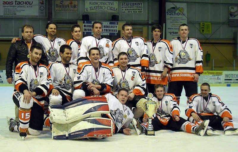 V pátečním finálovém večeru byli přichystaní na tachovském ledě oba aktéři oblastního přeboru k druhému rádoby rozhodujícímu zápasu. Od začátku bylo patrné, že Buldoci chtějí vyhrát již tento zápas a začali se tlačit do pásma Tatranu. Hned ve 3.minutě se zmocnil puku šutér Staněk a v koncovce nezaváhal 0:1. Po vystřídání druhá pětka Buldoků neobsadila střelce od modré a do černého se trefil Šnajdr. Srovnal na 1:1. O několik minut později zatáhl touš do útočného pásma Brunclík, skvěle uvolnil Šůchu a ten zvýšil na 1:2. Za další minutu nádherně zapracoval skvěle hrající Houdek. Vybídl Sládka přihrávkou a ten překonal Andrleho potřetí 1:3. Tatran za pár momentů vyšperkoval na druhé straně krásnou kombinaci na účet Buldoků, na jejímž konci stál Poznán a snížil 2:3. Buldoci opět obléhali branku domácích a z jedné povedené kombinace mezi Šůchou, Staňkem a Brunclíkem posledně jmenovaný rovlnil síť 2:4. Zase ovšem došlo k nemilému překvapení všech, když lehce ztracený puk zpracoval Dlouhý a znovu snížil na kontaktních 3:4. Nebývale plodnou třetinu na góly ukončil po vzorné spolupráci s Dráždilem Staněk 3:5. Druhá třetina je v podvědomí zakódovaná jako pasívní ze strany Boldoků. A nebylo tomu jinak ani dnes. Obdrželi jsme dvě branky z hole Salače L. a Malého, kteří využili slabou koncentrovanost na momenty v utkání a Přimda tak srovnala stav na 5:5. Bylo ovšem dobré, že jsme dokázali také jeden gól dopravit do sítě Tatranu. To se uvolil ke střelbě Sládek a nemýlil se a upravil třetinu na 5:6. „Poslední třetina" ročníku začala ubývat náramně hokejově. Jedno ze svých bravurních hokejových kouzel, hned v úvodní minuntě vytáhl z rukávu Brunclík, který namazal Staňkovi a ten gólovou lahůdkou završil dnes hattrickem na 5:7. Buldoci se dostávali před Andrleho často, avšak i na druhé straně měl Packan hodně práce s řešením nastalých situací. Z jedné takové se podařilo bleskurychle rozehrát dopředu a najetý Staněk, dnes při chuti hrající, zaznamenal již čtvrtý zápis a zvýšil na rozdíl třech gólů 5:8. To bylo v době, kdy stříbrský tým hrál v oslabení 3proti4. V tento moment se lámal chléb závěru utkání, který měl vyznít příznivě pro tým ze Stříbra. Tým z podhadí našel v sobě vnitřní sílu a na zteč branky se vydal obránce Brzobohatý, který svůj průnik zakončil s noblesou a elegancí sobě vlastní. Snížil tak na 6:8. Při vystřídání druhé pětky Stříbra však udeřilo rovněž na druhé straně, kde se zjevili sami před Andrlem Panuška se Sládkem a posledně jmenovaný si rovněž posbíral čepice naházené na led, za svůj dnešní hattrick 6:9. Pěkná gólová tečka za trochu gólově divokým letošním finále mezi Tatranem Přimda a Buldoky Stříbro. Mužstva podala bojovný výkon a na druhé straně v mezích je držel objektivně přesný sudí Martinec. (pb) " Tenhle tým projevil velkou vůli po vítězství a také se toto promítlo do konečného výsledku. Jsem rád, že konec se stal pro nás šťastným. Uznávám kvalitu finalového soupeře, který byl v tomto utkání houževnatější. Klání vedl přesný rozhodčí Martinec, který nepřipustil, aby zápas sklouzl jinam. Mám radost, že jsme tuto trofej získali nejenom pro nás Buldoky, ale pro celé Stříbrsko, protože Buldoci jsou tým ze Stříbra." spílal chválu k vítěznému zápasu trenér Bobr Tatran Přimda - HC Buldoci Stříbro 6:9/3:5,2:1,1:3/ na zápasy 0:2 Branky domácí: 3:21Šnajdr/Vejvoda/,9:00 Poznán/Brzobohatý/, 14:28 Dlouhý/Salač L./, 25:24 Salač L /Vejvoda/, 27:12 Malý/Salač E. 51:21 Brzobohatý/Malý/ Branky hosté: 2:23 Staněk, 6:54 Šůcha/Brunclík, 7:30 Sládek/Houdek/, 11:57 Brunclík/Staněk/, 17:17 Staněk/Dráždil, 31:04 Sládek, 40:59 Staněk/Brunclík/, 46:54 Staněk, 54:10 Sládek/Panuška/ Buldoci:Packan, Houdek,Dráždil,Šůcha,Staněk,Brunclík,Bárta,Červernka, Polívka,Beneš, Sládek, Panuška, Holák Tatran:Andrle, Růžička, Šnajdr, Salač E.,Salač L., Malý, Dlouhý, Vejvoda, Poznán, Koryťák, Brzobohatý Vyloučení : 5:9, z toho 10-min OT z mužstva Přimdy Poznán a TH(trest ve hře) do konce utkání Vejvoda(úder hlavou) Dne 19.04.2011:Václav Šůcha 19.04.2011 - 10:43:45 ali@s - blahopřeju Pro reakci na článek musíte být přihlšen |