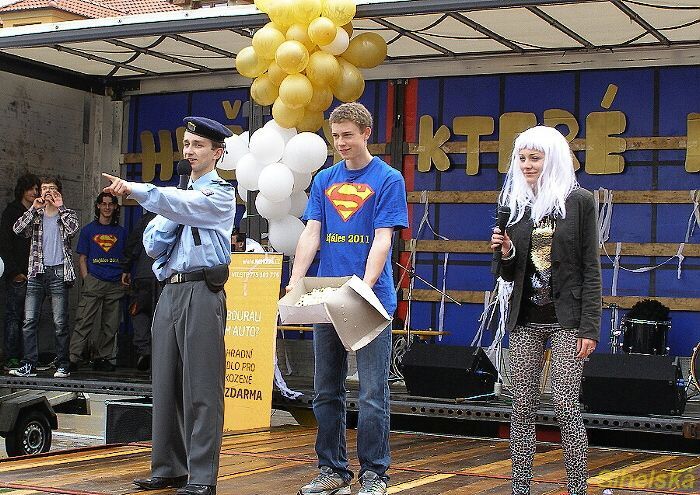 přesto se program líbil... Majáles na stříbrském náměstí poznamenalo deštivé počasí. "Moc nás to mrzí, mnoho lidí odešlo a my všichni jsme se na to dlouho těšili a připravovali," byly zklamané Tereza Homolková a Magda Vaňková ze třídy G5. "Dva měsíce se studenti domlouvali a zařizovali. Hodně cen nám dali sponzoři, za což jim děkujeme. Ale počásí je vrtkavé, musíme příště objednat lepší," dodaly už veseleji studentky. Majáles ve Stříbře má tradici delší než dvě desítky let. "Myslím, že je to už asi třiadvacet let, ale tento prý je výjimečný, že dospěl a slaví plnoletost," smáli se Tomáš Čirč a Václav Kratejl. "Studenti také udělili cenu Zlatého Milana. "Nemusíme každoročně volit krále Majálesu, můžeme to jednou přece trochu obměnit. Milan se jmenuje ředitel školy, a proto jsme zvolili netradiční cenu," dodali. Majálesové veselí zakončilo vystoupení kapel. Dne 29.04.2011:Martina Sihelská Pro reakci na článek musíte být přihlšen |