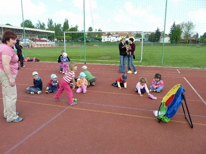 Mateřské školy se sešly na stříbrském pažitu Olympijské hry mateřských škol se konaly koncem týdne na stříbrském hřišti. Tam přijely také děti z kladrubské i bezdružické mateřinky. "Celkem na děti čekalo pět souteží, házely do dálky, skákaly v pytlích, běhaly a také je čekal pětiskok a překážková chůze," uvedl ředitel DDM Kaštánek ve Stříbře Miroslav Cvrk.