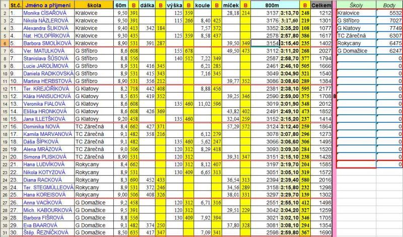 Atletický čtyřboj základních škol proběhl v Tachově. Pod záštitou Asociace školních sportovních klubů (AŠSK) proběhlo ve čtvrtek 26.5. v Tachově okresní kolo atletického čtyřboje starších žákyň. Družstvo stříbrského Gymnázia ve složení: Veronika Matulková, Stanislava Šůsová, Lucie Jarolímová, Daniela Radikovská a Martina Herbstová zabojovalo a v konkurenci deseti škol získala děvčata zlaté medaile a postup do krajského finále. Verča Matulková byla vyhlášena nejlepší čtyřbojařkou okresu. Ve čtvrtek 2. června přidala děvčata v krajském kole dalších 500 bodů do celkového výsledku a díky vyrovnaným výkonům celého družstva a hlavně ovládnutím výškařského sektoru, si zajistila 2. místo v kraji za Gymnáziem Klatovy a přivezla domů kromě poháru i postup na republikové finále. Zástupci klatovských vítězek totiž účast na „republice“ odmítli a tak 24. a 25. června do Opavy pojedou gymnazistky ze Stříbra se svým učitelem a trenérem Romanem Mužíkem. Gratulujeme a přejeme hodně štěstí. Dne 03.06.2011:Ivana Šůsová Pro reakci na článek musíte být přihlšen |