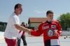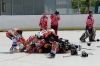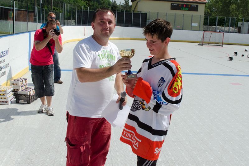 V sobotu 4. června proběhl na stříbrském hřišti 1. roční hokejbalového turnaje mladších žáků. Své síly a schopnosti porovnaly týmy TJ ZKZ Horní Bříza, CSKA Karlovy Vary, HC Tachov a domácí HC Buldoci Stříbro. Počasí tentokrát hráčům "přálo", i když v poledních hodinách se umělá plocha podobala více rozbouřenému moři, kde je vlna na vlně. A při teplotách 40°C na slunci, hráči předváděli obdivuhodný výkony. Bohužel je to důsledek nedodělaného stadionu, kde chybí zastřešení. V prvním zápase proti Buldokům nastoupili hráči z Horní Břízy, kteří inkasovali v 1. minutě branku z hole Tintěry. Druhý gól si nechali domácí na poslední minutu první poloviny zápasu (pozn. turnaj se hrál 2x 12 min.), kdy samostatně zakončoval Hanzlík. Ve druhé časti zápasu překvapil po nahrávce Šůchy Strnad hostujícího brankáře. V 18. minutě nabídnul zakončení Ebenhöhovi Mráček, který o několik vteřin uzavřel skóre zápasu na konečných 5:0. HC Buldoci Stříbro - TJ ZKZ Horní Bříza 5:0 (2:0,3:0) Ve druhém zápase se proti sobě postavili HC Tachov a CSKA Karlovy Vary, kteří přijeli v minimální možném počtu 5+1. I přesto předváděli velmi pěkný výkon od samého začátku až do konce. Na konci druhé minuty se dostali do vedení po střele Valty. Tachovští se nenechali zlomit a nejdříve v 9. minutě vyrovnali po brance Hornofa a v 15. minutě se dostali do vedení zásluhou Fišera, které pojistil ve 22. minutě Černý. HC Tachov - CSKA Karlovy Vary 3:1 (1:1,2:0) Ve třetím zápase přišlo na řadu okresní derby. Stříbrští Buldoci měli ještě na paměti loňskou hořkou porážku, kdy je tachovští přehráli vysoko 11:3. Tentokrát ve 4. minutě velmi pohotově uklidil míč nahozený Ebenhöhem nejmladší hráč v dresu Buldoků Krejčí za záda tachovkého gólmana. Druhý gól si domácí nechali opět na poslední minutu první časti, když Hanzlík po přihrávce Mráčka zvyšoval na 2:0. Po přestávce tato dvojice předvedla parádní akci, když po vyhrané buly Hanzlík poslal míč zadovkou na Mráčka, okamžitě vystartoval a Mráček mu přes všechny hráče poslal míč lobem do samostatného úniku, který Hanzlík úspěšně zakončil. Ve 20 minutě Tachov snížil Černým, ale o minutu později Mráček vymetl pavučinu v horním rohu tachovské branky a stanovil konečný výsledek. HC Buldoci Stříbro - HC Tachov 4:1 (2:0,2:1) V zápase mezi Horní Břízou a Karlovými Vary se dlouho hrálo za bezbrankového stavu. První gól dal v 17. minutě Mareš z Horní Břízy, ale pět statečných varských hráčů se nevzdávalo a to se vyplatilo. Ve 23. minutě srovnali z hole Weisse a deset vteřin před koncem urval vítězství pro Karlovy Vary Diviš. TJ ZKZ Horní Bříza - CSKA Karlovy Vary 1:2 (0:0,1:2) V dalším zápase se tachovští okamžitě pustili do soupeře a v polovině první minuty vedli nad celkem z Horní Břízy po brance Gažíka. V 9. minutě zvyšoval Berčík na 2:0. Hráči Horní Břízy se sice snažili o vyrovnání, ale nestačilo to na víc než na to, aby snížili ve 23. minutě na konečných 2:1. HC Tachov - TJ ZKZ Horní Bříza 2:1 (2:0,0:1) V posledním zápase turnaje čekal stříbrské Buldoky srdnatě hrající varský tým. Buldoci se zpočátku nedokázali dostat po delší přestávce do tempa a již nepředváděli tak pěknou hru jako v předchozích dvou zápasech. Přesto v 10. minutě Strnad překonal varského brankáře a o minutu později Hanzlík se opět uvolnil a po přihrávce Mráčka zvyšoval na 2:0. Na začátku poslední části Weiss snižoval, ale Buldoci již více soupeři nedovolili. Naopak Strnad pojistil vítězství v zápase i v turnaji ve 20. minutě. CSKA Karlovy Vary - HC Buldoci Stříbro 1:3 (0:2,1:1) Celý turnaj proběhl v pohodové atmosféře. Všichni si užívali poslední zápasy sezóny, po které zbude mnoho krásných vzpomínek. Velkou poklonu sklidilo mužstvo Karlových Varů, kteří s minimálním kádrem přijeli a sehráli pěkné zápasy. Poděkování patří sponzorovi turnaje, mlékárně Ehrmann Stříbro s.r.o., který věnoval spoustu mléčných výrobků, o které se děti s chutí podělily. Tabulka: 1. HC Bukldoci Stříbro 6 b. 2. HC Tachov 4 b. 3. CSKA Karlovy Vary 2 b. 4. TJ ZKZ Horní Bříza 0 b. Nejlepší střelec: 1. Tomáš Hanzlík (BULDOCI) 4 branky 2. Jiří Strnad (BULDOCI) 3 branky 3. Daniel Černý (Tachov) 2 branky 3. Jiří Weiss (CSKA) 2 branky Nejproduktivnější hráč: 1. Tomáš Mráček (BULDOCI) 6 kan. bodů 2. Tomáš Hanzlík (BULDOCI) 4 kan. body 3. Jiří Strnad (BULDOCI) 3 kan. body 3. Daniel Černý (Tachov) 3 kan. body 3. Tomáš Fišer (Tachov) 3 kan. body 3. Jiří Weiss (CSKA) 3 kan. body Nejlepší brankář: 1. Lukáš Nový (Buldoci) 36 min. 0 branek. 2. Radek Sládek (Buldoci) 36 min. 2 branky 3. Jaroslav Janošík (Tachov) 36 min. 3 branky 3. Vojtěch Marek (Tachov) 36 min. 3 branky Dne 06.06.2011:Václav Šůcha Pro reakci na článek musíte být přihlšen |