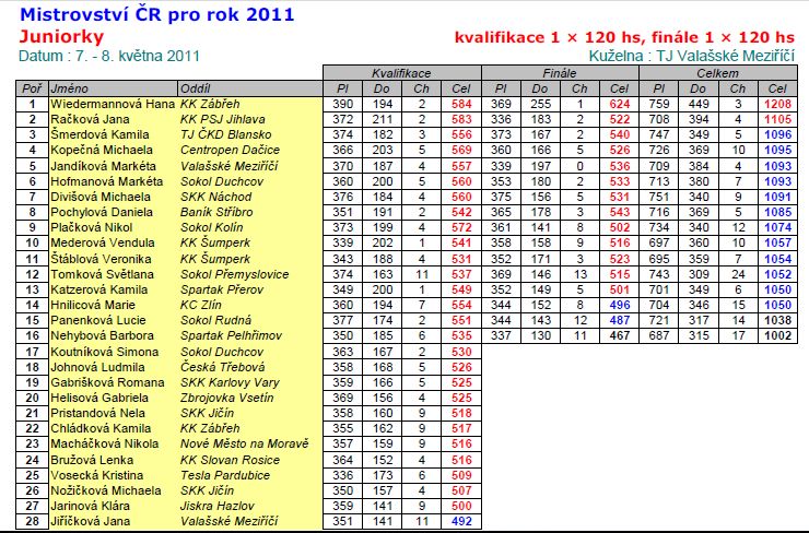 Kvalifikace se zúčastnilo 28 dívek. Byl to velice těžký boj, Daniela postupovala z 12. místa, ale naděje zde pořád vládla. Finále se mnohým juniorkám moc nepovedlo. Až na mistryni Wiedermannoou ze Zábřehu, která se jediná druhý den zlepšila, jinak všechny hráčky pohořely. Wiedermannová hodila krásných 624, tím udělala rekord kuželny žen a juniorek. Jelikož se výsledky z kvalifikace a finále sčítaly, tak se Daniela dostala do desítky nejlepších hráček a patří jí krásná osmá příčka. To vše díky psychické podpoře jejího trenéra pana Šragy a také podpory v obecenstvu.