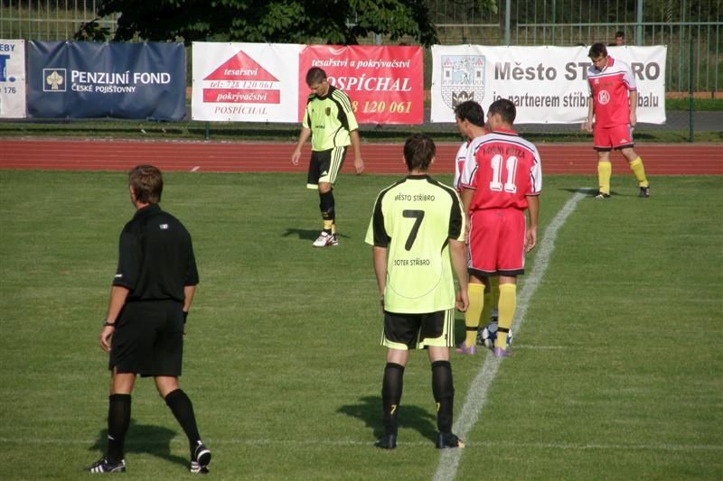 V dalším domácím utkání nenavázali stříbrští fotbalisté na předchozí výkony… ... a potvrdili, že s Horní Břízou hrát neumí. První poločas tomu přitom vůbec nenasvědčoval. Stříbrští fotbalisté byli aktivnější, vytvořili si i řadu šancí. V 9. minutě našel Dykův centr před brankou Demjana, který ale hlavičkoval mimo. Roli nahrávače si Dyk zopakoval i o dvě minuty později, Malému však střela vůbec nesedla. Ve 12. minutě ukázal svou silnou stránku, přímé kopy, Malý, gólman Mizera však jeho střelu s velkými problémy kryl. V 16. minutě otřela Šamanova hlavička břevno branky hostů. Teprve poté se do šance dostali hosté. Hackrův přímý kop vyrazil Cipra pouze před sebe, dorážku hostů však nedopustil Kertis. Tentýž hráč zabránil zakončení dvou rozběhnutých hráčů ve 21. minutě. Ve 30. minutě svůj tým podržel opět Mizera, když vyrazil na roh Jarešův pokus. Stejně si poradil i ve 35. minutě s přímým kopem Jareše i následným závarem. Ve 40. minutě zmařil Mizera i pokus Ábela. Všechny neproměněné šance zamrzeli stříbrské fotbalisty v nastaveném čase prvního poločasu. Odražený míč po rohovém kopu vrátil Čechura zpět před branku Baníku, kde měl velice jednoduchou úlohu Fedorco - 0:1.