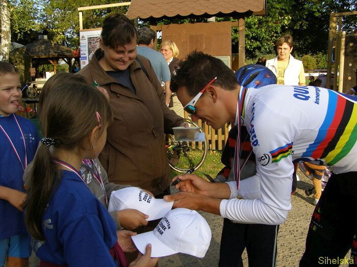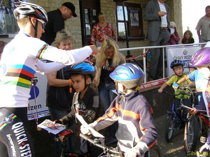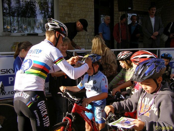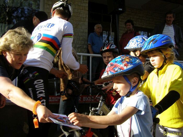Páteční odpolední vyjížďku se Zdeňkem Štybarem se nenechalo ujít více jak šest desítek dětí ze Stříbra a okolí. Děti si také troufly projet přes tři kilometry dlouhou trať, kterou musí Zdeněk v sobotu mnohokrát absolvovat. "Letos je to už třetí vyjížďka. Dělám to pro děti rád, rád jim i odpovím na otázky či se podepíši. Dnes bych také chtěl děti moc pochválit, jízda roklí a přes vlnovec byla pro ně jistě obtížná, ale všichni to zvládli na jedničku," usmíval se na děti kolem sebe Zdeněk Štybar. Na mistra světa se přijely podívat děti z celého regionu, mezi nimi byl také šestiletý Adam Fliegel z Tachova. "Přemluvil jsem maminku, aby mě sem vzala, chtěl jsem Zdeňka vidět. Projel jsem se s ním a dostal přímo od něj medaili. Mám z toho velkou radost a těším se na hlavní závod," řekl chlapec. Medailí, které osobně Zdeněk Štybar dětem předával, překotně ubývalo."Původně jsem jich měla připravených padesát, ale ještě jsme jich museli několik přidat. K tomu dostávaly děti také omalovánky, diplomy a sladkosti," uvedla Karolína Špilerová ze Stříbra. Dne 23.09.2011:Martina Sihelská #ZŠ# Pro reakci na článek musíte být přihlšen |