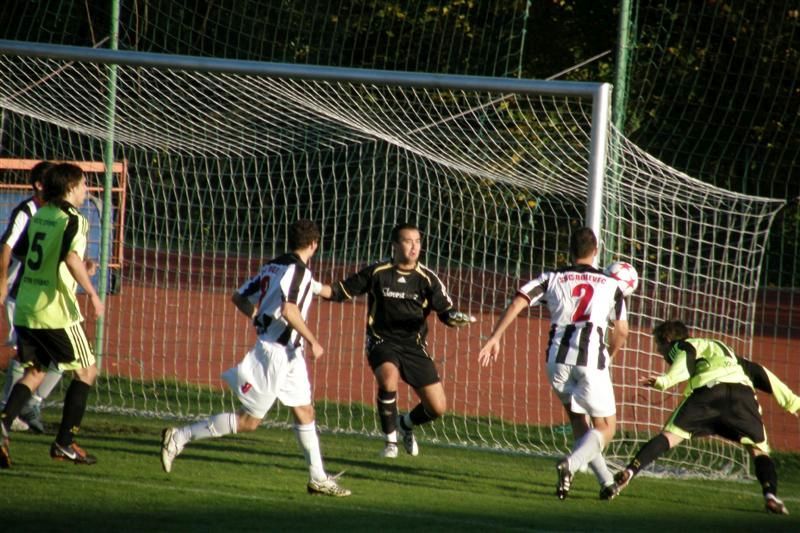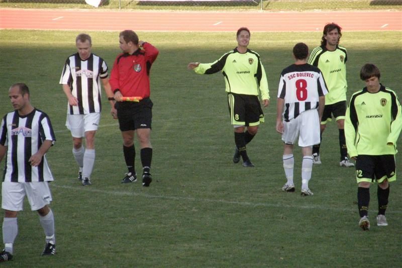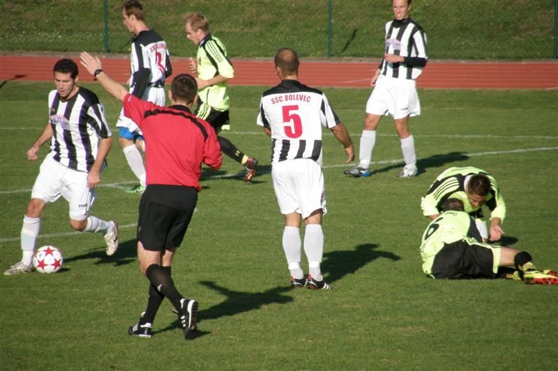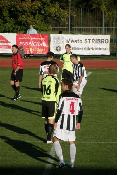 Po opatrném začátku se postupně začali domácí fotbalisté prosazovat. V 5. minutě hlavičkoval Zaoral po přímém kopu vedle. V 7. minutě vymotal Dyk obránce Bolevce, předložil na vápno Šamanovi, který však mířil vysoko nad branku hostů. V 15. minutě se aktivní Dyk dostal do zakončení, ale olevecký Klečka jeho pokus vyrazil alespoň na roh. Ve 21. minutě předvedl Cipra dlouhý výkop, gólman hostů i obránce zaváhali a Pubrle dokázal nabídnutou šanci využít - 1:0. Malého přímý kop ve 24. minutě likvidoval Klečka s problémy. Na druhé straně se z ojedinělé akce hostů dostal do zakončení Zítek. Míč však jen těsně minul Ciprovu branku. Gólovou pojistku odmítl ve 39. minutě Demjan, který zakončoval po rychlé kombinační akci Malého s Dykem. Poslední minuty prvního poločasu přinesli ještě šanci na každé straně. Nejprve bolevecký Černý dokázal přehodit stříbrského gólmana, míč naštěstí skončil vedle. Na druhé straně Malý přesně poslal míč za obránce, Demjan však v dobré pozici netrefil branku.