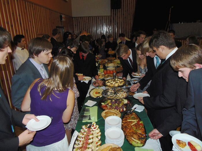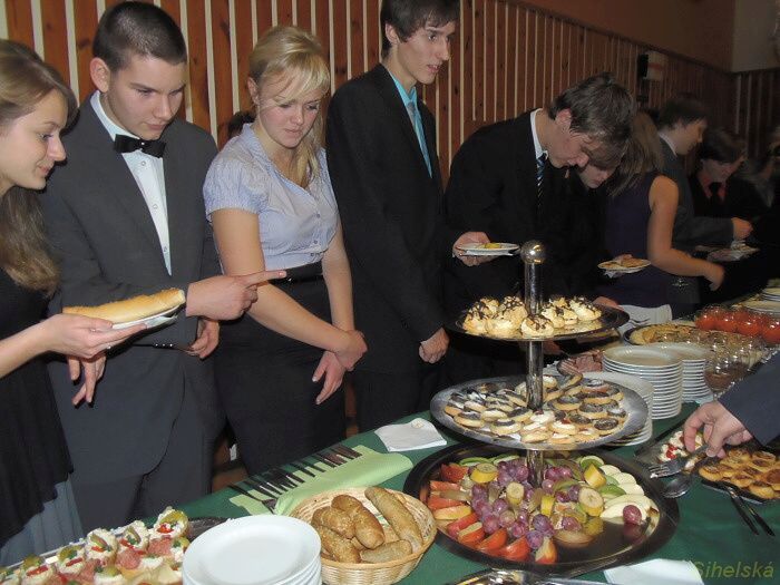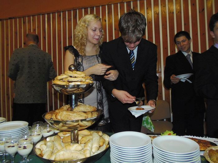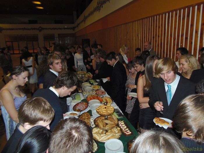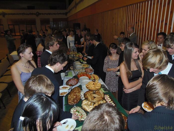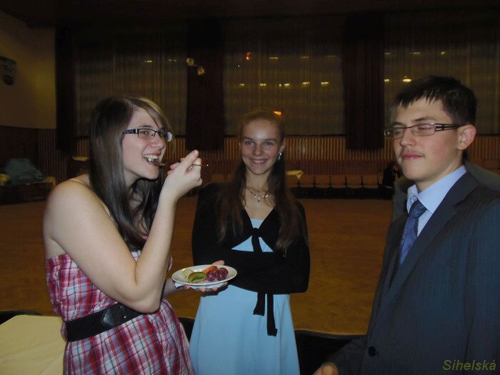 a pochutnali si na rautu od Klepsů Účastníci tanečníci kurzu, který končí 9. prosince závěrečným plesem, se učili etiketě ve společnosti a u stolu. Bohatý raut připravila fa Zlatý Kalich, vše o správném stolování pak vysvětlila Kateřina Štýbrová. Kromě ochutnávání měli tanečníci také soutěž, ze které postoupilo deset párů do dalšího kola. "Dnes to byla jedna z těch zábavnějších lekcí. Jednak jsme soutěžili v tanci a ještě jsme se dobře najedli. Samozřejmě vše podle etikety, tedy partnerka vybírala, partner nabíral," smáli se Veronika Pruknerová a Dominik Pendl. Zcela nezkušení prý v bontonu nejsou. "Hodně nás naučili rodiče, něco známe z filmů," vysvětlili tanečníci.