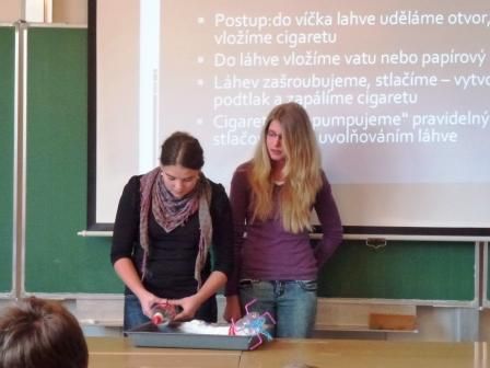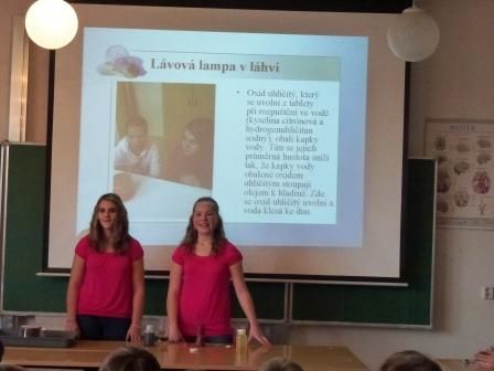 2.12.2011 se v Praze konalo 14. celostátní kolo soutěže s názvem „O klobouk kouzelníka Pokustóna“ aneb „V jednoduchosti je krása“. Cílem této soutěže je porovnání získaných vědomostí a dovedností žáků zábavnou formou a zvýšení zájmu studentů o přírodní vědy. Zástupci Gymnázia Stříbro se této soutěže z oborů fyziky a chemie zúčastňují již pravidelně a celkem pravidelně i s velkými úspěchy. Letošního ročníku se zúčastnila soutěže tři družstva děvčat. Eliška Suchardová a Zuzana Strankmüllerová (obě ze sekundy) s pokusy na téma „Proudění vzduchu za překážkou“, Kateřina Osmiková a Hanka Bártová (obě z tercie) – téma „Tři způsoby výroby a zviditelnění oxidu uhličitého“, Stanislava Šůsová a Eliška Dostalová (obě z kvarty) s pokusy „PET láhve ve fyzice“. V soutěži se celkem prezentovalo 20 družstev a naše děvčata se opět neztratila, Kateřina Osmiková s Hankou Bártovou získaly vynikající 3. místo v celostátním kole. Eliška se Zuzkou získaly 8. místo, Stáňa s Eliškou 11. místo. Všem studentkám děkujeme za přípravu a reprezentaci Gymnázia Stříbro a našeho města. J.Soukupová a Z. Kalčíková Dne 08.12.2011:Mgr. Zuzana Kalčíková 08.12.2011 - 14:31:11 Kaculka1188 - Jsou to holky šikovný!!! :) Pro reakci na článek musíte být přihlšen |
