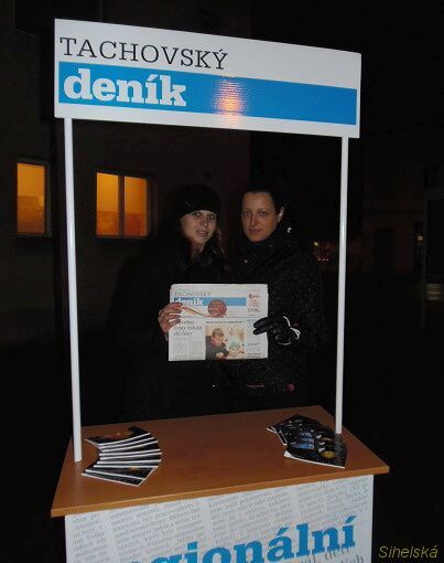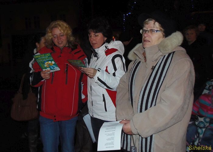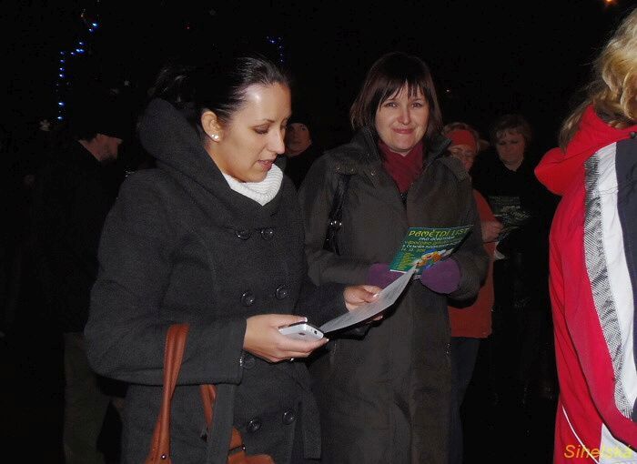 Zaregistrovalo se 215 zpěváků Ve Stříbře zpívalo 215 lidí. Zpočátku to nevypadalo dobře, neboť téměř do 17 hodin vydatně pršelo. Nejvíce lidí přišlo zhruba 10-15 minut před 18 hodinou a převážně šlo o rodiny s dětmi. Děti dokonce tancovaly. Zpěváky přivítal starosta města Stříbra Bohuslav Červený, akci moderoval David Junek a hudebně doprovázel Jan Schimmer. V pátečním Tachovském deníku vyjdou fotografie ze Stříbra. Kdo se v něm pozná a bude zakroužkovaný, může si přijet do redakce vyzvednout knihu. Podmínka: Musí přivézt zakoupený deník, ve kterém se našel. Dne 14.12.2011:Martina Sihelská Pro reakci na článek musíte být přihlšen |