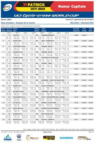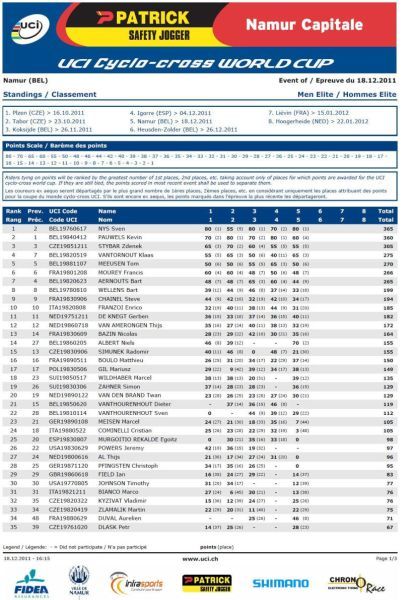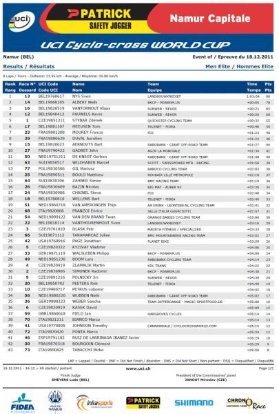 Výsledky World Cup Namur Belgie 18.12.2011: