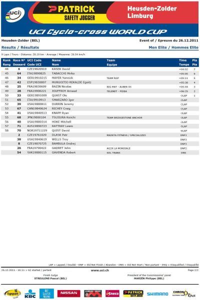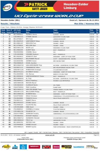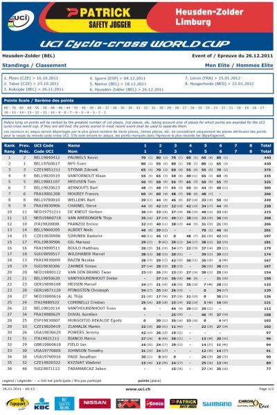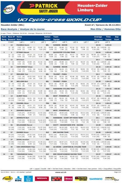 Výsledky World Cup Heusden-Zolder Belgie 26.12.2011: