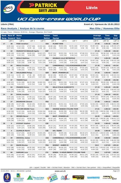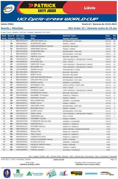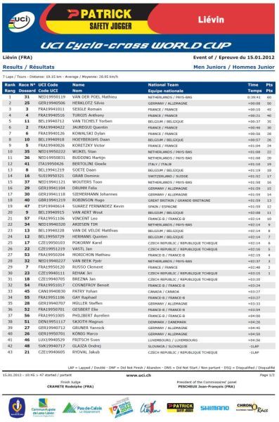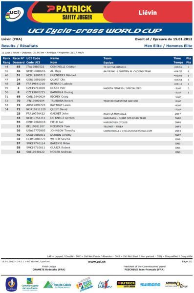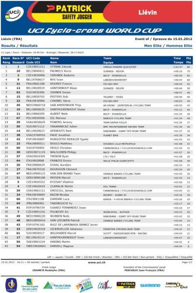 Výsledky World Cup Liévin Francie 15.1.2012: