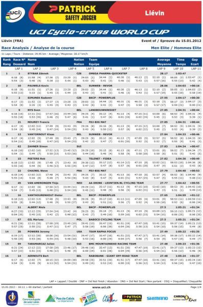 Průběžné výsledky UCI Cyclo-cross World Cup 2011/2012: Výsledkové listiny (results) a průběžná pořadí (standings) World Cup 2011/2012. Pojeďte na MS 2012 v cyklokrosu do belgického Koksijde. Jak se stát členem Fan klubu Zdeňka Štybara? Dne 15.01.2012:Ing. Josef Hrábek #ZŠ# Pro reakci na článek musíte být přihlšen |