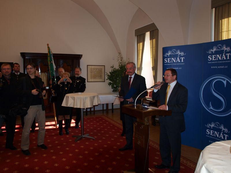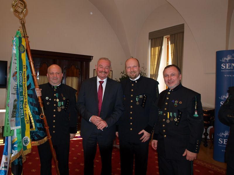 1. místopředseda Senátu ČR Přemysl Sobotka přijal ve Valdštejnském paláci zástupce hornických spolků ČR a Slovenska. ... 1.2.2012 se delegace Sdružení hornických a hutnických spolků ČR zúčastnila ve Valdštejnském paláci v Praze srdečného společenského setkání s 1. místo-předsedou Senátu parlamentu ČR panem Přemyslem Sobotkou. Setkání byli přítomni zástupci jednotlivých hornických spolků ČR, zástupci Združenia banických spolkov a cechov Slovenska, Báňská komora ze Slovenska, Těžební unie ČR a předseda Českého báňského úřadu. Na úvod vystoupil a vřele všechny přítomné přivítal 1. místopředseda Senátu Přemysl Sobotka. Z řečníků se jako první dostal ke slovu 1. místopředseda Hornického spolku Stříbro pan Karel Neuberger. Poděkoval za přijetí, vyslovil přání dalších společných budoucích setkání, poděkoval dámám z protokolu za laskavý a vstřícný přístup, za ochotu a pochopení. Hornický spolek Stříbro předal panu Sobotkovi dar, a to krásnou modrou vázu s hornickými znaky, práci novoborských sklářských studentů a dekret čestného členství v našem spolku. Následovala vystoupení perkmistra SHHS ČR ing. Miroslava Šťastného, který na závěr své řeči rovněž předal panu místopředsedovi malou pozornost. Poté se ujal slova předseda Českého báňského úřadu Ing. Ivo Pěgřímek, zhodnotil současný stav v hornictví a i jeho budoucnost. Posledním řečníkem byl Ing. Jaroslav Malchárek, předseda ZBCS Slovenska, který mimo jiné předal panu Sobotkovi vyznamenání od ministra hospodářství Slovenska. Závěrečnou řečí s velkým poděkováním nám Všem bylo vystoupení pana Sobotky. Následovalo společné foto s panem Přemyslem Sobotkou. Poté, pro většinu z nás, byla připravena prohlídka budov Senátu s výkladem. Ostatní se mezi tím věnovali družné zábavě a plodné diskuzi. Celé setkání proběhlo ve velmi osobním a přátelském duchu. Zdař Bůh Dne 04.02.2012:Karel Neuberger Pro reakci na článek musíte být přihlšen |