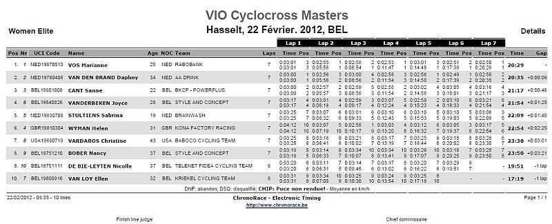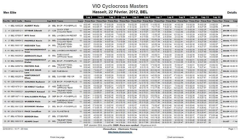 Výsledky Indoor Hasselt: Stránky závodu Hasselt 22.2.2012.. Výsledková listina Hasselt 22.2.2012 časovka. Výsledková listina Hasselt 22.2.2012. Videosestřih I. Indoor Cyclocross Masters 22.2.2012 v Hasseltu. Videosestřih II. Indoor Cyclocross Masters 22.2.2012 v Hasseltu. Dne 23.02.2012:Ing. Josef Hrábek #ZŠ# Pro reakci na článek musíte být přihlšen |