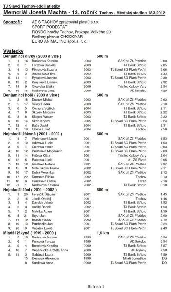 13. ročník Memoriálu Josefa Machta. Na start se postavilo rekordních 134 běžců v sedmnácti kategoriích. Možná to bylo pěkným slunečním počasím nebo termínem. Letos se závod konal týden před Mistrovstvím ČR v přespolním běhu všech kategorií. Proto někteří běžci využili tohoto závodu jako test před mistrovstvím republiky. Nejmladší závodnicí byla Jana Hadravová z AK Sokolov (roč. nar. 2008). Nejstarším závodníkem byl Vladimír Tolar z SV Stříbro (roč. nar. 1940).