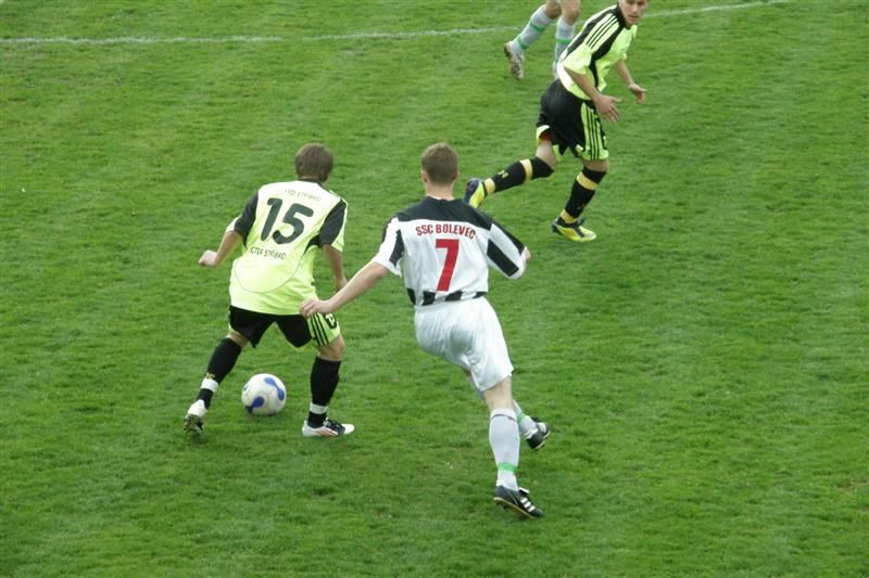 Stříbrští fotbalisté nezvládli jedno z klíčových utkání a situace nevypadá dobře… Na Prokopávce začali aktivněji hráči Baníku. Ve 2. minutě si Bůžek obhodil obránce, v zakončení mu však zabránil terén. O minutu později prošel přes obranu Dyk, centr na Bůžka však nebyl přesný. Poté se začali prosazovat domácí fotbalisté a především Černý měl na hlavě vedoucí branku. Nejprve hlavičkoval po rohovém kopu z brankoviště vedle stříbrské branky. V 10. minutě poslal Černý pro změnu míč z malého vápna nad branku! Hra se poté přelévala mezi šestnáctkami, až přišla 28. minuta. Bolevecký Greif zahrál přímý kop, nejvýše vyskočil Kohout a otevřel skóre - 1:0. Stříbrskou obranu vyškolil ve 36. minutě Černý, který prošel postupně přes tři zkoprnělé hráče, předložil do brankoviště Kadeřábkovi, který měl velice jednoduchou úlohu - 2:0. V prvním poločase stojí za zmínku už jen 43. minuta, kdy byl před boleveckou brankou stažen Dyk, píšťalka rozhodčího však zůstala němá. Druhý poločas začal velkou šancí Bolevce. Šnaider utekl po pravé straně, nacentroval do brankoviště, kde Kohoutovi chyběl krok, aby míč usměrnil do prázdné branky. Ve 48. minutě se v roli nahrávače ocitl tentokrát Kohout, Pelnář však nemířil mezi tyče stříbrské branky. Postupem času bylo vidět, že Baníkovci mají snahu se o výsledek ještě poprat, vytvářeli si převahu, ale chyběla přesnost a finální přihrávka. Kýžený kontaktní gól nepřineslo ani několik rohových kopů. S přibývajícími minutami byla znát na obou stranách i patrná nervozita. Třetí hřebík do stříbrské „rakve" mohl přidat Pelnář, ke kterému nečekaně propadl míč. Beke byl ovšem tváří tvář úspěšnější a navýšení skóre se nekonalo. Sestava Baníku: Beke - Honzík, Hřebík, Jareš, Petraška, Šaman, Florus, Kertys (70. Pubrdle), Dyk, Bůžek, Průša Dne 07.05.2012:Bc. Karel Lukeš Pro reakci na článek musíte být přihlšen |