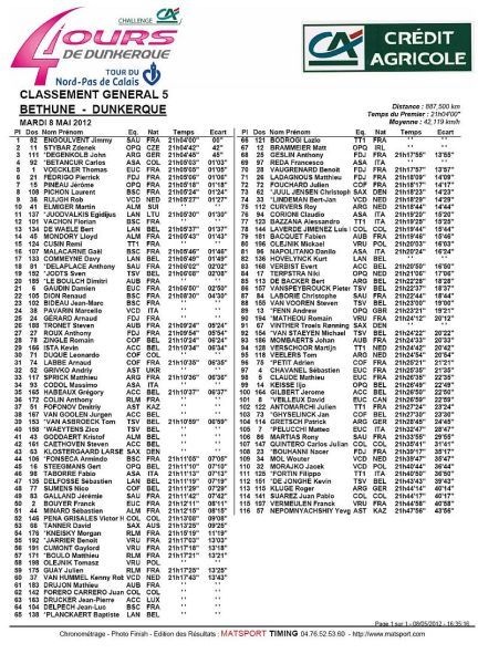 Oproti loňskému roku si o jedno místo celkově polepšil. ... Zdeněk po dovolené a společném ukončení cyklokrosové sezóny s FAN KLUBem v Sytně poblíž Stříbra odletěl na Malorku, kde se měsíc tvrdě připravoval na svůj první silniční závod této sezóny - 4 Jours de Dunkerque na severu Francie. Hned v závěru první etapy z přístavního města Dunerque do Coquelles dlouhé 169 km se Zdeněk dostal do úniku desetičlenné skupiny, v níž na čele odvedl velký díl práce, aby si udržela náskok před pelotonem, cílem pak projel ve skupině jako poslední. Ve druhé etapě z Berck sur Mer do Montreuil sur Mer dlouhé 180 kilometrů si Zdeněk zavzpomínal na cyklokros - kromě větru i pršelo a bylo chladno. Zdeněk rozjížděl spurt stájovému kolegovi a nakonec dojel na druhém místě. Ve třetí etapě z Poperinge centre do Poperinge Reningelst dlouhé 178 km peloton začal pozdě stíhat únik šestičlenné skupiny a Zdeněk tak dojel v pelotonu na 41. místě se ztrátou přes minutu a půl. Ve čtvrté královské etapě z Gravelines do Casselu dlouhé 183 kilometrů nasadil Zdeněk k trháku ve stoupání necelé 3 km před cílem a jeho tempu nikdo nestačil, takže Zdeněk projel cílem jako první. V poslední deštivé etapě z Béthune do Dunkerque dlouhé 176 km Zdeněk už jenom jistil při společném dojezdu 21. místem celkové druhé místo, když se nenaskytla příležitost zaútočit na první místo vzdálené 43". Konečné pořadí: 1. Engoulvent (Fr./Saur - Sojasun) 2. ŠTYBAR (ČR/Omega Pharma-Quickstep) +42" 3. Degenkolb (Něm./Argos - Shimano) +45" 4. Betancur Gomez (Kol./Acqua & Sapone) +1'03" 5. Vöckler (Fr./Team Europcar) +1'05"