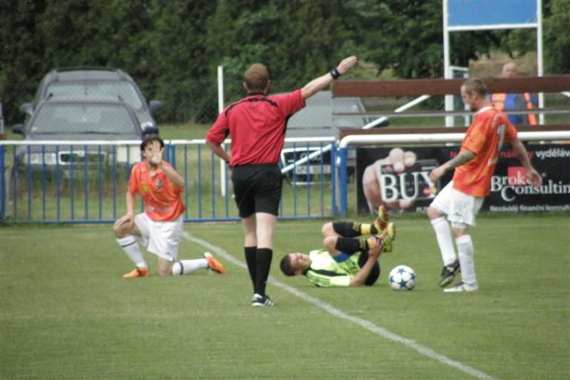 Stříbrští fotbalisté vstřelili favoritovi 3 branky… ... na výhru to ovšem nestačilo. Stříbrští fotbalisté byli favoritovi, především prvních 30 minut, rovnocenným soupeřem a v první šanci zápasu se dokonce ocitl stříbrský Bůžek. Využil podklouznutí chrásteckého obránce, postupoval sám na gólmana, zakončit však nezvládl. Ve 20. minutě se na druhé straně do zakončení dostal kanonýr Roubal, v těžké pozici však netrefil stříbrskou branku. To, co zdobí chrástecký fotbal, rychlá kombinace a přechod do útoku, předvedl Roubal ve spolupráci se Sadílkem a Šimrem. Beke byl pozorný. Ve 32. minutě zahráli Baníkovci velice špatně rohový kop a z rychlého protiútoku otevřel střelou k tyči skóre Křen - 1:0. Odpověď Baníku mohla být blesková. Florus šel sám na domácího gólmana, ale ani on nedokázal zakončit. Naopak domácí opět z protiútoku navýšili vedení. Roubal zatáhl po lajně míč, před brankou ještě hledal některého ze spoluhráčů. Zde ovšem „zaúřadoval" Šaman, který při odkopu trefil Tyra tak dokonale, že se od něj míč odrazil do odkryté branky - 2:0! Od té chvíle bylo na hřišti pouze jedno mužstvo. Po návratu z kabin začala fotbalová paráda v podání Roubala. Nejprve si ve 49. minutě narazil se Sadílkem a přesnou střelou zvýšil na 3:0. V 54. minutě se přesnou hlavičkou prosadil Chvojan - 4:0. Na nešťastného „bůra" zvyšoval v 61. minutě opět Roubal, když zakončoval do prázdné branky po přihrávce Šimra - 5:0. Chrástecký střelec byl při chuti. V 64. minutě míč z úhlu napodruhé dopravil do stříbrské branky a zvýšil již na 6:0. Roubal se trefil i v 66. a 68. minutě a na ukazateli skóre svítilo již 8:0. Tentýž hráč nastřelil ještě v 70. minutě tyč. Svůj zápasový účet Roubal přece ještě navýšil. V 70. minutě se trefil i hlavou po rohovém kopu a šestou brankou zvýšil na 9:0. Domácí diváci hnali své hráče k 10. brance, tím se však otevírala vrátka v chrástecké obraně. V 81. minutě se prosadil stříbrský Dyk po spolupráci s Blažkem - 9:1. Čepované desítky se domácí publikum nedočkalo, přestože k ní měl v 86. minutě velice blízko Sadílek, střela však jen těsně minula branku Baníku. Na druhé straně se v poslední pětiminutovce trefili ještě Bůžek a Jareš a uzavřeli tak konečné skóre na 9:3. Sestava Baníku: Beke - Honzík, Hřebík, Blažek, Jareš, Petraška, Šaman, Florus (71. Petrák), Dyk, Bůžek, Průša Dne 02.06.2012:Bc. Karel Lukeš Pro reakci na článek musíte být přihlšen |