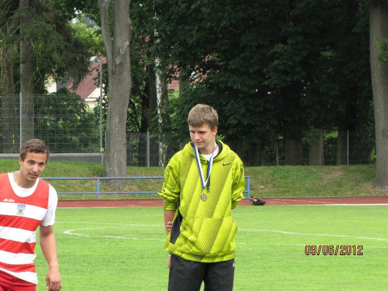 V sobotu 9. června 2012 se v Domažlicích konalo ... společné mistrovství Plzeňského a Karlovarského kraje jednotlivců v atletice. Závodilo se v kategoriích dorostu, juniorských a dospělých. Pochopitelně atleti TJ Baník Stříbro nemohli chybět a vedli si úspěšně. Jako tradičně byl nejlepší Tomáš Jaša. I když závody absolvoval v rámci tréninku v plném zatížení, startoval na 800 i 1 500 m. Jako první absolvoval 800 m a doběhl jako první muž v čase 1:59,16 min. O 2 hodiny později startoval v běhu na 1 500 m. Také tam nenechal nikoho na pochybách a doběhl si pro druhé vítězství, vezl si domů 2 zlaté medaile. Asi největším překvapením byl výkon Veroniky Šrámkové. Tato svěřenkyně Jana Krabce je věkem ještě žákyně a startovala v dorostenkách v běhu na 800 m. Po volnějším prvním kole dokázala hodně zrychlit a ve velmi dobrém osobním rekordu 2:24,87 min. si doběhla pro zlatou medaili. Velice dobře si vedla také Karolína Hrubá. V běhu na 800 m se držela ve vedoucí skupině 3 závodnic. V dlouhém finiši se vydala ze všech sil a za cílem vyčerpáním padla na dráhu. Úsilí jí přineslo osobní rekord 2:22,63 min. a stříbrnou medaili. Další stříbrnou přidala v běhu na 400 m (63,20 sec.). Stříbrnou medaili za hod kladivem dlouhý 30,16 m získal v kategorii mužů Martin Nedbal. Také Adéla Klečková si stoupla na stupně vítězů, Dostala stříbrnou medaili za 2.místo a výkon 64,71 sec. v běhu na 400 m žen. Bronzová odjížděla z Domažlic Veronika Matulková. První získala v dálce. Doskočiště, z kterého se jí neskáče dobře, jí nepřálo ani letos. Skočila 490 cm. Druhou bronzovou přidala ve výšce, zdolala laťku nastavenou na 150 cm. Další bronzovou přidal dorostenec Václav Dedek v hodu oštěpem. Zlepšil si osobní rekord na kvalitních 39,71 m. Také v hodu diskem za hod. dlouhý 31,22 m bral bronzovou medaili. Těsně za medailovými pozicemi zůstali Denisa Vávrová, Sára Holečková, Soňa Müllerová. Smůlu měla štafeta dorostenek na 4x100m, která finišovala na 3.místě, ale pro špatnou předávku byla diskvalifikována. Fotografie: Dne 16.06.2012:Ing. Vladislav Moravec Pro reakci na článek musíte být přihlšen |