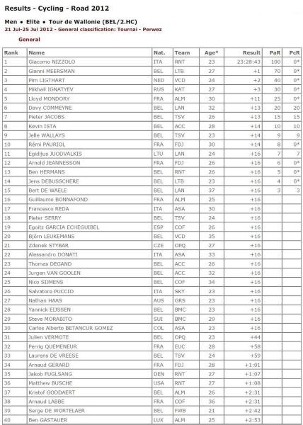 Etapy Tour de Wallonie 2012: