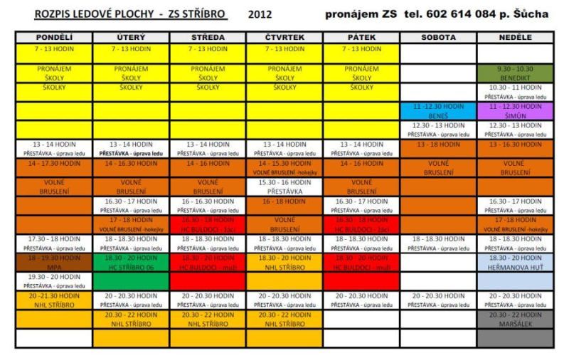 Zájemci o bruslení a hokej mohou využít ledovou plochu víceúčelového hřiště ve Stříbře. Dopolední hodiny jsou určeny pro školky a školy, odpolední čas je určen pro volné bruslení, bruslení s hokejkami (povinná helma) a hokejové kluby.