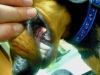 -pes má všechny zuby druhé, od špičáku až po poslední dvě stoličky má všechny zuby vytrhané. Tyhle zuby pes používá když v tlamě drží třeba aport. Je dost možné, že je psovi třeba nějakým klackem někdo vylámal. (toto je ale jen spekulace, podle toho, jak je na tom pes zdravotně věřím několika šíleným věcem, které se mu mohli dít) Musela to být neuvěřitelná síla, když psovi vytrhali druhé, zdravé zuby.