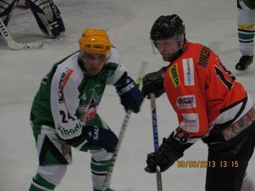 Druhé semifinálové utkání KSM ve skupině C se odehrálo v sobotu na ZS Kooperativy v Plzni. HC STŘÍBRO 06 hostilo hokejisty HC Klaustimber. O postupujícím a finalistovi nebylo rozhodnuto, protože první utkání play - off skončilo za stavu 6:6 a nyní následovala odveta. První třetinu začal lépe Klaustimber dvěma góly Jandy (asistence Makovec) a Makovce (asistence Janda) v druhé a třinácté minutě utkání. A zdálo se, že Nulašestce zvlhl cestou k utkání střelný prach, Stříbrští marně atakovali gólmana hostů, který v brance čaroval a po patnácti minutách měl stále čisté konto. V druhé části hry Klaustimber pokračoval v tlaku a zvýšil v devatenácté minutě na 0:3. Do listiny střelců se zapsal opět Makovec (asistence Leško). Z dění na ledě bylo téměř zřejmé, že o postupujícím týmu a finalistovi soutěže ve skupině C bude rozhodnuto tentokrát asi bez problémů. Domácí tým se však ve 22. minutě probudil ze střelecké letargie a snížil dvěma slepenými góly M.Velicha a Sasze na 2:3. Na ledě se přitvrdilo a na trestnou lavičku usedli také první vyloučení hráči. Nejprve byl za podražení vykázán klaustimberský Hrachovec a vzápětí nabídlo Stříbro hostům sedmiminutovou výhodu přesilové hry za vyloučeného Průšu, který nesouhlasil s výrokem rozhodčího. Běžela třicátá minuta a hosté byli potrestáni za špatné střídání, trest za hráčskou lavičku si odseděl Vraný. Stříbro se však stále hledalo a druhá třetina tak skončila za stavu 2:3 pro Klaustimber. Do třetího dějství vstoupila Nulašestka opět v oslabení. Za nedovolené bránění byl potrestán M.Velich. Mezitím již Průša dostatečně zpytoval své svědomí a naskočil z trestné lavičky na led. Svůj výpadek ze hry odčinil vzápětí - Macák mu namazal a gólman hostů bezmocně lovil puk ze své svatyně - bylo srovnáno na 3:3. Překvapivý gól zřejmě rozhodil soupeře natolik, že zcela vypadl z tempa a Stříbrští toho dokázali využít. Ve čtyřicáté minutě zvýšil na 4:3 opět M.Velich. Hra se přelévala z jedné strany kluziště na druhou a oba dva gólmani se překonávali v úspěšných zásazích. Skóre se však měnilo ještě jednou - minutu před koncem utkání přidal pojistku kapitán Nulašestky Sasz a zvýšil na 5:3. Radost Stříbrských z gólu byla tak veliká, že ji sudí nakonec ještě ocenil vyloučením hráčské lavičky za zdržování - trest odseděl Křelovec. Na výsledku zápasu se však již nic nezměnilo. HC STŘÍBRO 06 - HC KLAUSTIMBER 5:3 Sestava domácích: Kolena, Šaman - Macák, Křelovec, F.Turek, J.Velich, Rajchl, Průša, Sasz, M.Velich, Matys, Polák, Jahoda Sestava hostů: Čížek, Václavek - Vraný, Mrázek, Nemeš, Janda, Hrachovec, Dolák, Šlemenda, Makovec, Moravec, Mlnařík, Hahn, Černý, Leško, Hanzlíček, Filip Góly: M.Velich 2, Sasz 2, Průša - Janda, Makovec 2 Třetiny: 0:2, 2:1, 3:0 Vyloučení: 3:2 Velmi korektně odehrané semifinálové utkání, ve kterém byli vyloučeni ze hry pouze tři hráči, určilo konečné pořadí na třetím a čtvrtém místě soutěže ve skupině C. Lídr tabulky HC Losiná - obsadil třetí příčku a HC Klaustimber čtvrtou. Finále tak dle klíče play-off nakonec překvapivě sehrají týmy, které se umístily na pátém a šestém místě v základní části soutěže - HC STŘÍBRO 06 a TJ Baník Líně. Finále KSM skupina C: 1.utkání HC STŘÍBRO 06 - TJ Baník Líně neděle 7.4.2013 od 17.15 hodin hala KOOP Plzeň 2.utkání TJ Baník Líně - HC STŘÍBRO 06 sobota 13.4.2013 od 12.45 hodin hala KOOP Plzeň Dne 02.04.2013:Zdeňka Kantová Pro reakci na článek musíte být přihlšen |