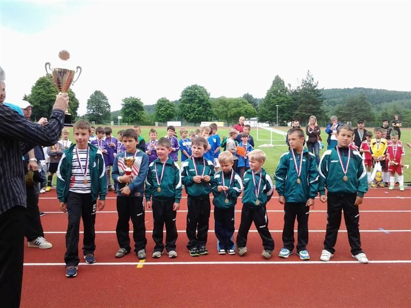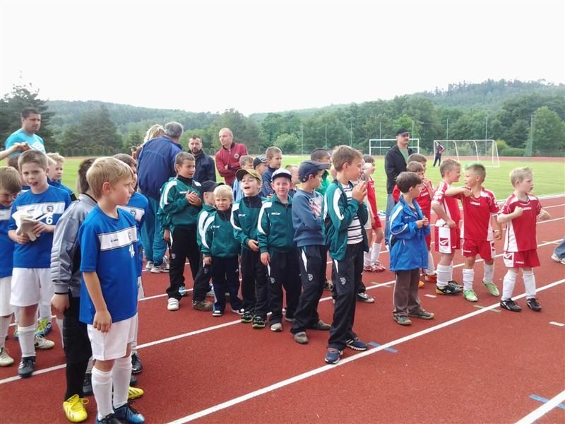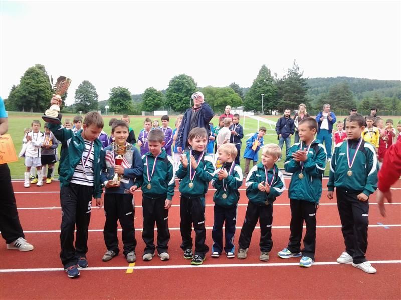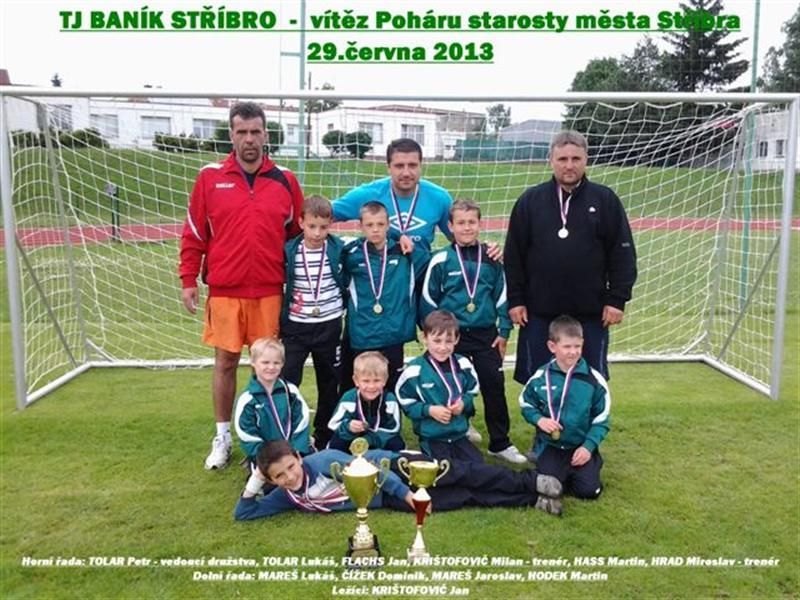 Poslední víkend před prázdninami se konal turnaj fotbalových přípravek… Hrálo se 1krát 15minut na travnatém hřišti rozděleném na dvě hrací plochy. Po každém odehraném zápasu se kopaly pokutové kopy, které by rozhodly v případě rovnosti získaných bodů a skóre. Penalty se stříbrským borcům moc nedařily, ale své soupeře přehrávali svými výkony ve hře. Domácí tým porazil FK BVK Planá 1:0, Jiskru Erpužice 4:1, tým HC Plzeň 2:0 a Jiskru Bezdružice 3:1. Jen s týmem TJ Sokol Stráž remízoval 1:1. V konečném pořadí domácí získali 15 bodů a stali se vítězi turnaje. Na druhém místě skončil tým FK BVK Planá, na třetím TJ Sokol Stráž, na čtvrtém místě Jiskra Bezdružice, na pátém místě HC Plzeň a posledním místě tabulky Jiskra Erpužice. Pro malé sportovce byly připravené sladkosti, medaile a poháry, které jim předával osobně starosta města Stříbra pan Dr. Bohumil Červený. Dne 03.07.2013:Bc. Karel Lukeš Pro reakci na článek musíte být přihlšen |