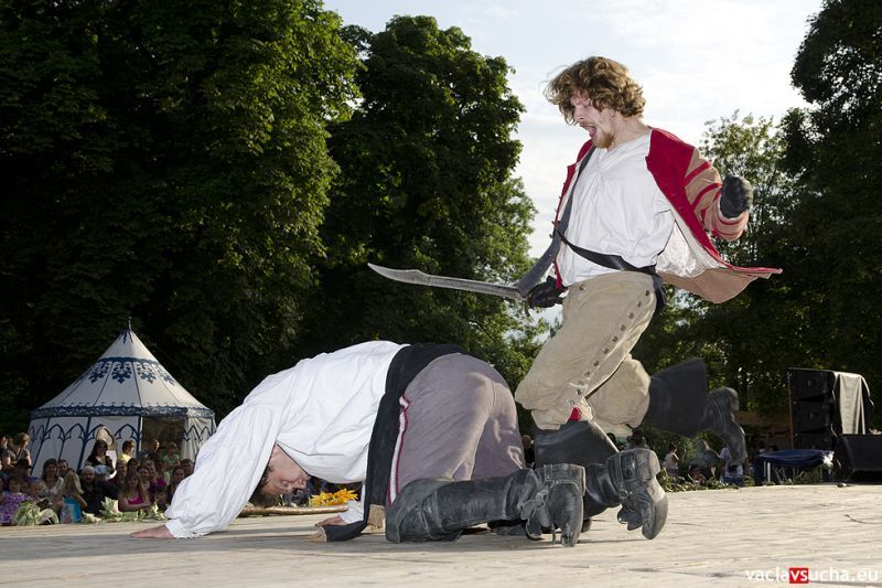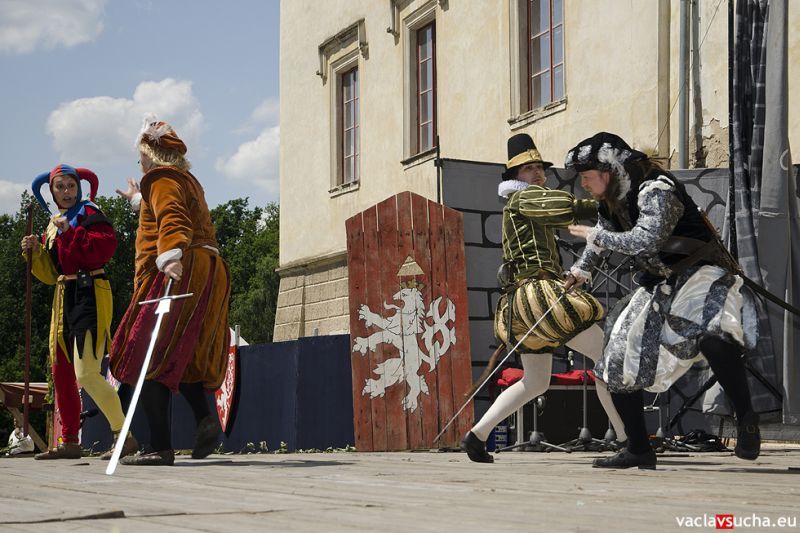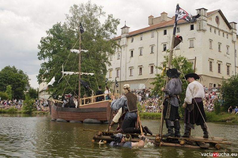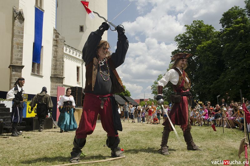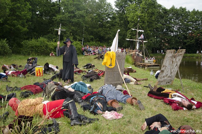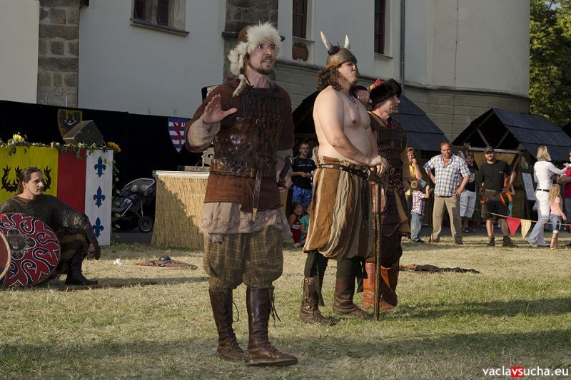 V sobotu 13. července se na nádvoří borského zámku uskutečnil jubilejní desátý ročník Zámeckých historických slavností. Přinášíme několik fotografií, z nichž je patrná výborná atmosféra, krásná vystoupení, mnoho zábavy, prostě vše, co k jedinečným slavnostem patří. Slavností začaly v pravé poledne uvítáním návštěvníků konšely města a naražením sudů, které věnoval p. Jiří Plevka z pivovaru Chodovar. Hned poté začal program, který jel nepřetržitě až do půlnoci. Vrcholem slavnostního odpoledne byla pirátská bitva na Zámeckém rybníce, té se zúčastnilo okolo padesáti účinkujících, byli mezi nimi piráti na pirátské lodi, ztroskotaná posádka na voru v podání domácí skupiny Korbel, královská garda s mušketami i piráti z přístavu. Kromě skupiny Korbel se na bitvě podílely skupiny Gladius z Hořovic, Balteus z Plzně, Alotrium z Černošic a Krvavý Regiment z Plzně. Bitva byla zpestřením celého dne a organizátoři slavností mají v plánu pokračovat s podobnými vystoupeními i v dalších ročnících Zámeckých slavností. V programu na podiu na horním zámeckém nádvoří vystupovaly taneční skupiny Hortus Gratiae a Animata, hudební skupina Braagas, šermířské skupiny Berounští měšťané, Maledictus, Zubři, fakírské umění předváděla skupina In Flamenus, velmi zajímavé byly sokolnické ukázky společné s výcvikem koní. Jako každý rok se na podiu představily domácí skupiny Korbel a Mericia, tentokrát diváky zavedly do života kočovných společností svou scénkou Čardášová svatba. Večerní program obohatili svými souboji gladiátoři ze skupiny Taurus.F.Gladiatoria a celý slavnostní den zakončil ohňostroj střílený z louky u Zámeckého rybníku. Slavnosti navštívili tisíce lidí, kteří měli kromě bohatého programu, možnost vidět při práci řemeslníky z dobové společnosti Danar, kteří předváděli dávno zapomenutá řemesla, pro děti byly připraveny středověké hry, střelba z luku a kuší a po celý den probíhaly v zámku prohlídky, kdy si návštěvníci prohlédly všechny opravené prostory a zavítali také do velkého sálu, kde obnova začne v příštím roce. Dne 01.08.2013:Václav Šůcha 02.08.2013 - 12:22:50 georges - Ano,tak mají vypadat slavnosti,ale Stříbro se to asi nikdy nenaučí,bohužel. 01.08.2013 - 15:32:00 Pepa - Jako každoročně jsem se tam zajel podívat z Holostřevské cyklovyjížďky a opět mě pořadatelé nezklamali. Vše bylo v historickém duchu včetně prodejních stánků! Klobouk dolů a palec nahoru. Pro dokreslení pár amatérských fotografií ve fotogalerii http://www.stribro.cz/gallery.php?id=140. Pro reakci na článek musíte být přihlšen |