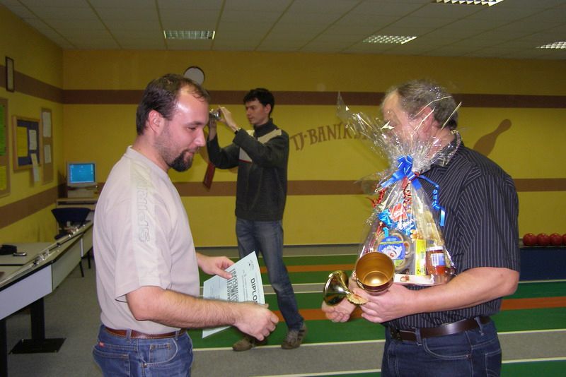 Vyhodnocení SNL 2006 se konalo ve Stříbře v nové víceúčelové hale na baníkovském stadiónu... Soutěž proběhla ve dvou kolech – jarním a podzimním. Hodnotily se jak nejlepší náhozy, tak jednotlivci a družstva. Nejlepším náhozem s přehledem zvítězil Roman Lipchavský z družstva UNTERWASSERMANŮ. První místo z jednotlivců si vybojoval Čestmír Körtvely. Ten bojoval za družstvo AFL KNOFLÍKÁŘI. Samozřejmě došlo i na družstva, kterých se do soutěže dostalo rovných deset. Jak tedy dopadlo klání? První příčku obsadilo družstvo KK BEZNADĚJ, kteří vyhráli 15 soutěží a měli na kontě pouze tři prohry. Druhé místo patří PIVRNCŮM, ti uhájili 13 výher z 18 možných. Třetí příčku pak obsadili UNTERWASSERMANI s výkonem 12 výher, šestkrát prohráli. Všichni převzali poháry a dárkové koše. Nechyběl ani šampus, který se pil přímo z vyhraných pohárů. Na závěr si účastníci dali ještě malý souboj v kuželkách. „Tak jsem rádi, že jsme zvítězili, před půl rokem jsme v něco takového nevěřili. Dali jsme si název KK BEZNADĚJ právě proto, že jsme doufali, že bychom mohli bojovat aspoň o předposlední místo,“ řekl nám Karel Hodek z KK Beznaděj. A jak prý vůbec přišli na nápad zapojit se do soutěže? „Tak nějak jsme jednou popíjeli v partě a slovo dalo slovo a v dubnu už jsme hráli,“ smáli se vítězové. Dne 19.12.2006:Martina Sihelská Pro reakci na článek musíte být přihlšen |