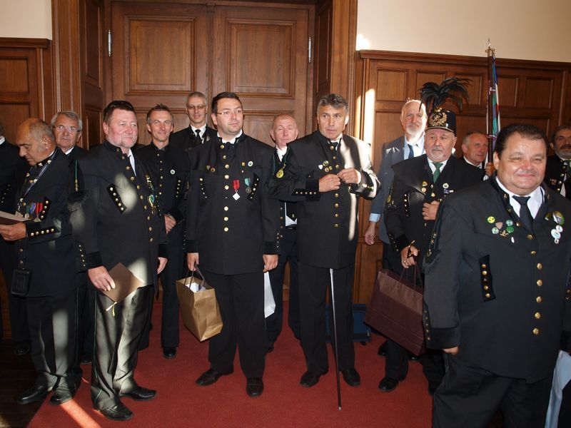Kamarádi, přátelé a příznivci hornictví... Kamarádi, přátelé a příznivci hornictví, o tomto víkendu se v královském horním městě Kladně uskutečnilo v pořadí již 17. setkání hornických měst a obcí ČR. Setkání se zúčastnilo 51 delegací z ČR, Slovenska, Polska a Německa. První účastníci se začali do Kladna sjíždět v páteční podvečer, aby byli přítomni slavnostnímu zahájení, které proběhlo na náměstí Starosty Pavla a v kostele Nanebevzetí Panny Marie. Úvodního slova se ujal kladenský primátor ing. Dan Jiránek, původním povoláním horník. Během zahajovacího ceremoniálu setkání pod názvem „Kladenské fedrování „ se nám představil Hornický pěvecký sbor z Kladna pod vedením emeritního předsedy ČBÚ prof. Romana Makária. Po skončení oficiální přivítání se sešlost přesunula do nedalekého kladenského zámku a jeho zahrad. Zde v rámci programu byli oceněni za celoživotní dílo někteří kladenští horníci a hornické osobnosti. Stříbrští horníci v rámci tohoto programu předali dvě medaile kladenských inženýrům V. Nelibovi a J.Uváčkovi. Závěr programu byl v prostorách zahrad a přilehlé usedlosti. Teprve až v sobotním ránu se do Kladna dostavila mezi ostatními i velmi početná skupina stříbrských horníků a stříbrských ostrostřelců. Po ranním přijetí na radnici primátorem ing. Danem Jiránkem se začali hornické delegace formovat ke slavnostnímu průvodu městem. Hornický průvod se vydal z centra města směrem k městskému stadionu Sletiště, kde se konal hlavní bod programu. Všechny delegace byli osobně přivítány moderátorem akce. V krátkém čase byla vyzdvihnuta minulost každého přítomného města či hornické obce. Po projevech oficiálních hostů, byly dekorovány hornické prapory a standarty, následoval program v duchu hornických tradic i se „ Skokem přes kůži „. I v této části programu se našel prostor pro vyznamenání několika dalších osobností. Sdružení SHHS ČR poprvé využilo nově získanou spolkovou medaili pro ocenění ing. J.Kimera. Další slovo získal zástupce slovenského ZBSC Dr. D.Vilím, který ocenil členku stříbrského hornického spolku Jindřišku Šrámkovou pamětní medaili slovenského ministra hospodářství. Dnes již skoro devadesátiletá paní Jindřiška Šrámková při poděkování se s dojetím rozhovořila o své práci na stříbrských šachtách, kde pracovala jako naražečka, za což si získala velké sympatie publika. Poté následoval kulturní program, který vrcholil několika populárními zpěváky a skupinami ( např. Noid ). Program byl ukončen ve večerních hodinách velkým ohňostrojem. Hornická část publika se přesunula do nedalekých Vinařic na bývalý černouhelný důl Mayrau, kde se konal Den horníků. Za velmi krásného letního počasí si všichni přítomní mohli prohlédnout dnešní hornické muzeum. V řetízkové šatně na dole Mayrau byli v podvečer vyhlášeny výsledky Českého permona 2013. Za zmínku stojí úspěch našeho kamaráda z Chodova pana Karla Veselého, který obdržel jednu z cen. Jeho celoživotní vášní, mimo své manželky, je sbírání hornických uniforem, čepic a dřevěných figurek. Závěrem bychom rádi poděkovali pořadatelskému městu za perfektní organizaci a přijetí na Kladně. Pomyslnou štafetu pro rok 2014 přebírá město Český Krumlov, město pánů z Růže, město stříbrných rud ve středověku a grafitu v novověku. Všichni se můžeme již nyní těšit na jedno z nejkrásnějších měst v Čechách. Zdař Bůh Karel Neuberger