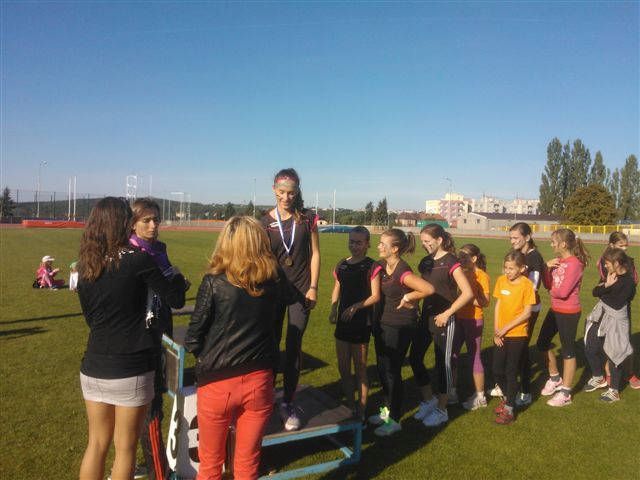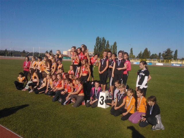 V sobotu 28. září 2013 se konalo na stadionu ... Škody Plzeň finále mistrovství Plzeňského a Karlovarského kraje družstev mladšího žactva. Baník Stříbro slavil úspěch již postupem chlapců i děvčat. Děvčata odjela silně oslabena, když těsně před závody se zranily opory Dominika Čečková a Kamila Všetičková. Závody však skončily velkým úspěchem Baníku. Chlapci obsadili jen těsně druhé místo, když o pořadí rozhodl větší počet prvních míst ve prospěch Chodova, 1. ŠAK Chodov 110 bodů Děvčata v oslabení vůbec na medaili nemyslela, přesto se ji podařilo vybojovat. Na bronz na krku mohla být pyšná, tvrdě o něj bojovala a povedlo se. 1. Viktoria Plzeň 148 bodů