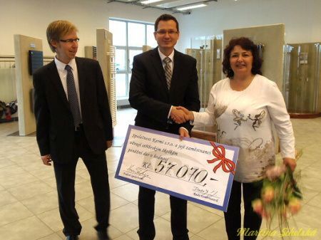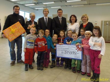Díky soutěži na vánočním večírku ve firmě se podařilo vybrat přes 57 tisíc, tyto peníze půjdou do stříbrské mateřinky a budou dobře utraceny, jak prozradila ředitelka Mateřské školy ve Stříbře Věra Cikánová. "Postupně upravujeme školní zahradu, vloni jsme z této sbírky pořídili houpací koníky a letos bychom chtěli koupit další herní prvky, nejspíše to budou houpačky. Chtěla bych moc poděkovat všem zaměstnancům Kermi, že na nás takto myslí," řekla ředitelka s úsměvem. Šek byl předán ve středu 22. ledna ve školícím centru v závodě. Vedení firmy bylo odměněno krátkým vystoupením dětí z mateřinky, které se na novinky těší. "Zazpívala jsem s dětmi několik písniček. Dostaneme tu nějaké peníze a za ně si pak něco koupíme do školky," pochlubila se Eliška Pavlíková. Co by si děti přály nejvíc nám řekly pětileté Kamilka Šrámková a Veronika Červená. "Určitě dostaneme na zahradu houpačky a taky bychom chtěly bazén, kdyby to šlo," uvedly malé slečny. Předávání šeku se účastnil jednatel společnosti Petr Holeček, vedoucí závodu Josef Majer, za zaměstnance přišel předseda závodní rady Jaroslav Dražský. "Vánočního večírku se zúčastnilo několik stovek zaměstnanců a každý chtěl trochu přispět. Pracuje zde spousta rodičů, kteří ve zmíněné školce mají děti, takže rádi pomohli a za to si odnášeli symbolické ceny ze soutěže," uvedl Dražský, který podle slov jednatele přispěl také velkou částkou. První finanční obnos byl předán vloni, tehdy ale byla částka mnohem nižší. "Vloni se vybralo asi o 14 tisíc méně, letos to bylo lepší. Chtěli bychom z toho udělat tradici, rádi takto pomůžeme na potřebném místě, vždyť také naši zaměstnanci školku potřebují," uvedli Josef Majer a Petr Holeček.