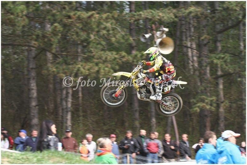 Stříbrský motokrosař se ujal vedení v Inter mistrovství ČR! Novou sezónu tuzemského velkého motokrosu otevřel úvodní podnik 4-dílného Inter mistrovství ČR (IM ČR), které pořádá Českomoravská asociace motocyklového sportu (CAMS). Seriál začal tam, kde loni skončil – v Třemošnici na Pardubicku. Na zdejší atraktivní přírodní trať Kubíkovy Duby měli naši závodníci z předchozí sezóny příjemné vzpomínky. Díky těchlovickému Rudolfu Weschtovi putoval na Stříbrsko celkový bronz ve třídě MX2, pňovanský Petr Smítka přivezl dokonce zlato ze třídy OPEN. Návrat na místo činu vycházel již od dopoledne lépe Weschtovi, který si připsal první 3 mistrovské body za nejrychlejší kolo v kvalifikačním tréninku. Odpolední závodní jízdy pak potvrdily Weschtovu dominanci mezi 39 startujícími ve třídě MX2. Obě rozjížďky měly stejný průběh. „Rudy“ dobře odstartoval na třetím místě, během několika zatáček se dostal na druhou pozici a jako hladový vlk začal nahánět vedoucího jezdce, který měl menší náskok. V 1. jízdě se stal lovnou zvěří polský vicemistr Wysocki, v 2. jízdě byl obětí přední slovenský závodník Šimko. Oba zahraniční piloti dopadli stejně – Weschta je během několika kol trvalým tlakem uštval, a poté předjel. Ve startovním poli nechyběl úřadující mistr Krč nebo první vicemistr Špičák, přesto se nenašel už nikdo, kdo by soustředěně jedoucího Západočecha polapil. Rudolf Weschta za celý den nenašel přemožitele a zvítězil v úvodním podniku IM ČR! Jde o jeho premiérové vítězství mezi elitou na mistrovství republiky. Rudy se v Třemošnici po zimním přestupu do východočeského týmu BV Racing Cross mohl cítit tak trochu domácím jezdcem. Sympatie místního publika si ale získal především svým výkonem, kterému nechyběl žádný z atributů kvalitního motokrosu. Mladý pilot předvedl fyzickou připravenost, techniku jízdy, odvahu, ale i trpělivost. Nezapomínal přitom bavit diváky atraktivními skoky. Také nová Weschtova Suzuki s tradičním číslem 37 se ukázala v plné síle a svěřenec trenéra Jiřího Churavého na ní po vzorně připravené trati doslova létal. I Petr Smítka jezdící za HULHO Motocross Team změnil v zimě stroj a osedlal KTM objemu 350 ccm. První etapu cesty za obhajobou titulu ve třídě OPEN mu v Třemošnici řádně zkomplikovaly nepovedené starty a silná konkurence. „Smíťa“ se tak vždy musel pracně probíjet ze zadních pozic, zatímco špička ujížděla pryč. Přestože v obou jízdách neúnavně bojoval až do konce, na lepší než 4. místo se nedostal a s „bramborovou medailí“ skončil i celkově. O návrat na stupně vítězů v IM ČR se jistě pokusí již v příštím závodě, který se pojede 15.6. ve Vícenicích u Moravských Budějovic.