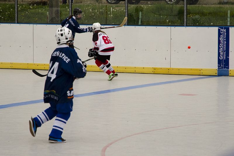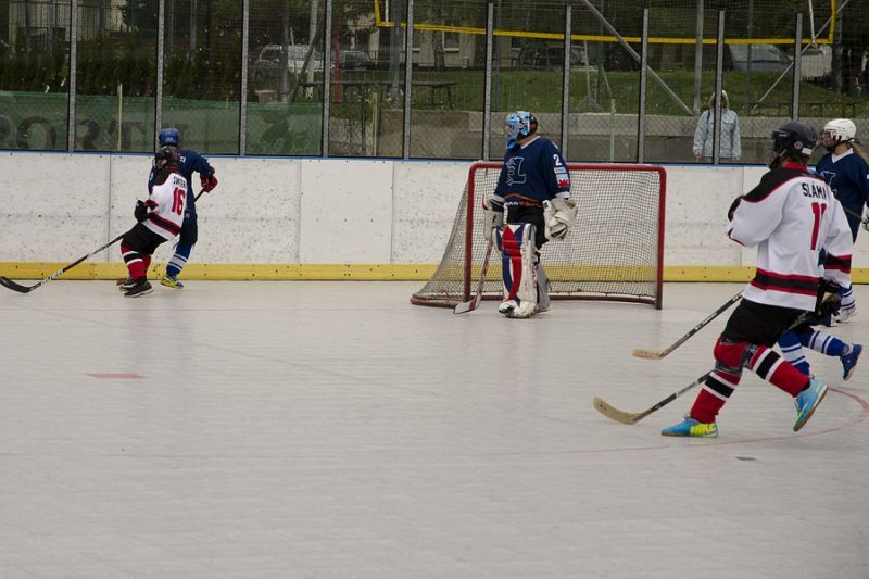 První květnovou sobotu se již po čtvrté střetli Buldoci s HBC Plzeň –Litice, soupeřem, který letos uzavírá tabulku. Tentokrát litičtí dorazili do Stříbra s velmi zúženým kádrem, do zápasu nastoupili se šesti hráči a brankářem. Proti se postavili domácí s třemi útoky a dvěma obranami. Celý zápas se prakticky odehrál v obraném poli soupeře. Během necelých pěti minut Buldoci vedli 3:0 a postupně navyšovali skóre až ke konečnému stavu 9:0. Bohužel stříbrští nedokázali udržet po celou hru koncentraci, čemuž přispělo i sevření domácího útočníka dvěma hráčky soupeře. To natolik strhlo stříbrský mladíky, že jen stěží trenéři dokázali je vrátit do zápasu. Naštěstí je v danou chvíli dokázal podržet brankář R. Bubeníček. Hodnocení trenéra: „Nepředvedli jsme moc líbivou hru, ale povinné vítězství jsme splnili, oba naši brankáři udrželi čisté konto. Na druhou stranu není příjemné hrát proti tak oslabenému soupeři, který všechny míče pouze vyhazuje. Kdyby nebylo výše zmíněného „útoku na hlavu a semknutí našeho útočníka dvěma děvčaty“, možná by kluci přidali ještě více branek. To však není to podstatné. Spíše mi mrzelo, že si v takovémto zápasu nedokážeme vyzkoušet herní situace, které trénujeme.“ HC Buldoci Stříbro – HBC Plzeň-Litice 9:0 (3:0,2:0,4:0) Dne 06.05.2014:Václav Šůcha Pro reakci na článek musíte být přihlšen |
