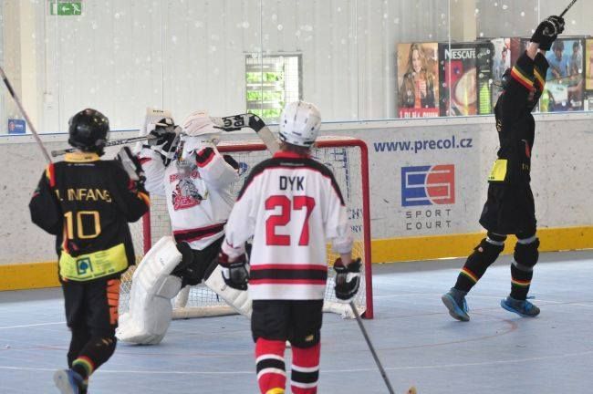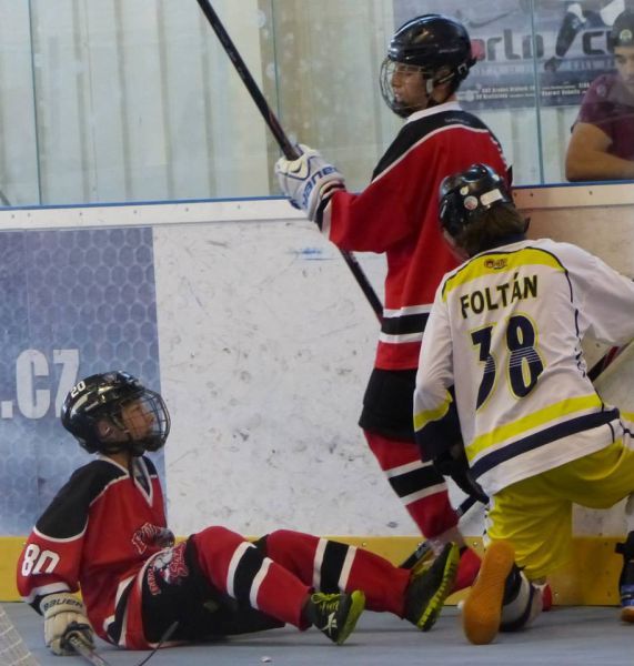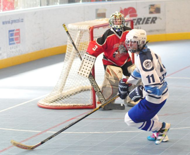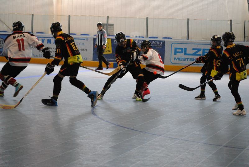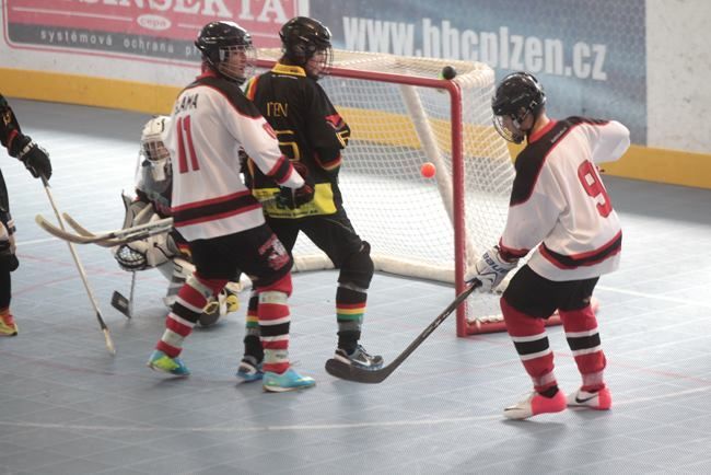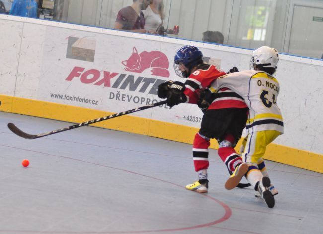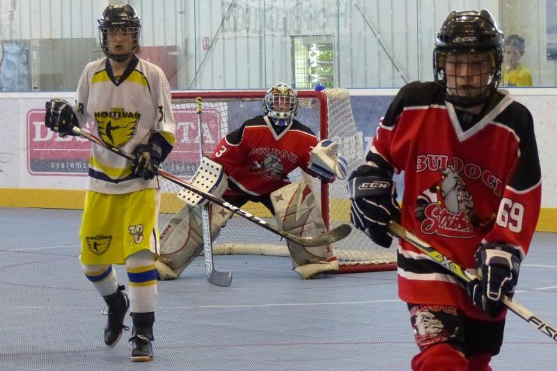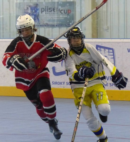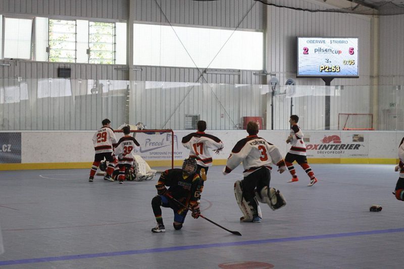Stříbrští starší žáci Buldoků Stříbro se o víkendu 7.-8.6. poprvé zúžastnili mezinárodního turnaje v hokejbalu Na turnaj konaný v plzeňské hokejbalové hale přijeli dva týmy ze Švýcarska (Oberwil Rebells, Kernenried Bulldozers), z Německa (Heilbronn Hornets) a za Českou republiku (HBC Plzeň, HBC Hostivař, HC Buldoci Stříbro). Druhé utkání Buldoků s německým Heilbronn Hornets bylo hodně vyostřené, plné faulů. V první minutě si šel sednout na trestnou stříbrský Sláma. Po návratu hned odčinil své provinění gólem od modré. Tím ještě více rozdráždil soupeře, který opravdu začal hrát ještě agresivněji. Hlavně ve druhé půli se dveře od trestné se skoro nezavřely, rozhodčí tam posílali jak rozdrážděné Sršně, tak i bojovně naladěné Buldoky (vyloučení 4:8). Buldokům však větší nedisciplinovanost Heilbornu hrála do karet a vyhráli 3:0. Se švýcarským celkem Oberwil Rebells sehráli vyrovnané utkání bez zbytečného vylučování. V závěru Buldoky však hodně mrzely neproměněné gólové šance, když v předposlední minutě Šůcha si dostatečně nepohlídal unikajícího Keisera, který dokázal v rychlosti zavěsit míček nad Kořínkovu vyrážečku. Rebelové se tak mohli radovat s těsného vítězství. V neděli čekal stříbrské hráče další švýcarský celek, Kernenried Bulldozers. Buldoci měli povětšinu utkání míč pod kontrolou, ale nedokázali být úspěšní při zakončení. Obětavými zkroky Buldozéři odráželi blokovali střely a pokud nějaká prošla, zlikvidoval jí gólman Stucki. Stříbro si nedokázalo poradit s pevnou defenzivou Kernenriedu a tak utkání skončilo remízou, čímž si Buldoci značně zkomplikovali postup do závěrečného zápasu o umístění. Do posledního utkání s favorizovanou Hostivaří nastupovali s vědomím, že nesmějí obdržet větší množství branek. Stříbro muselo hrát hodně defenzivní hru s častými icingy. Převaha letošního vicemistra MČR byla zřejmá. Hostivař si v klidu došla pro další tři body a postup do utkání o 1. místo a Buldoci s velkým vypětím udrželi příznivé skóre zajišťující postup do boje o 3. místo. V závěrečném duelu se švýcarský mistrem chtěli stříbrští oplatit sobotní prohru a tak plánovali okamžitý tlak, který by jim mohl přinést větší herní pohodu. Opak se stal pravdou. Rebellové rychle získali dvoubrankové vedení a špatnou disciplínou si to stříbrský tým ještě zhoršoval. Během přestávky stříbrský trenér přeskupil formace a hráči sebrali zbytek svých sil. V druhé půlce vletěli Buldoci na Rebelly jak uragán. Deseti vteřinách nastartoval parádní obrat Buldoků Berčík, který tečoval přihrávku přímo z vyhrané bule od Šilhána. Dvě minuty na to vyrovnal stav zápasu opět Berčík po přihrávce Kalčíka. Po té poslal obervilský trenér do branky Lauru Michl, kterou záhy překonal clonící Syrový, když si prohodil míček mezi nohy a následně i betony půvabné dívenky a zařídil Buldokům vítěznou branku. Zlomový okamžik způsobil Sláma nahozený lobem z obraného pásma přímo mezi betony švýcarské gómanky, který k překvapením celé haly skončil v brance. Pátá branka padla, když Kalčíkovu střelu tečoval jeden ze švýcarských obránců přesně k tyči a jeho pokus tak překvapil i gólmanku Michl. Obervilu nepomohla ani závěrečná hra bez gólmana a nevyužili přesilovky 6 na 4. Stříbro sice prohrávalo, ale následně ve druhé půli se výrazně zvedlo a zvrátilo průběh zápasu. Stříbro tak skončilo na 3. místě Pilsen cupu. O první místo si zahráli dva přední týmy českého mistrovství. Plzeň však nenechala nikoho na pochybách, že turnaji je jasným favoritem. O čemž svědčí i to, že během celého turnaje neobdržela jedinou branku a plzeňský gólman Hrubý měl pouhých 22 zákroků. Zhodnocení turnaje trenérem stříbrských Buldoků Václav Šůchou: „Vážíme si pozvánky na ojedinělou akci jímž byl Pilsen Cup 2014, mezinárodní turnaj starších žáků. Pro nás to bylo premiérové porovnání výkonů se zahraničními týmy. V zápasech se švýcarskými týmy jsme sice nedokázali podat plný výkon, většinou jsme se přizpůsobili jejich tempu. Což nás mohlo v závěru mrzet, nakonec nám to však stačilo, abychom proklouzli do boje o třetí místo. V poslední polovině utkání jsme však předvedli skvělý výkon a dotáhli to k našemu nejlepšímu výsledku sezóny. Jsem rád, že kluci zakončili tento ročník vítězstvím. Se čtyřmi hráči ještě pokračuji v přípravě na úplný vrchol pro žáky do 15 let, kterým je Pohár hl. m. Prahy konaný na zimním stadionu Eden 14.-15.6.2014.“ Tabulka skupiny:1. HBC Plzeň 4 1 0 19:0 13 2. HBC Hostivař 4 0 1 25:3 12 3. Oberwil Rebells 2 0 3 5:21 6 4. HC Buldoci Stříbro 1 1 3 3:9 4 5. Kernenried Bulldozers 1 1 3 5:14 4 6. Heilbronn Hornets 1 1 3 4:14 4
