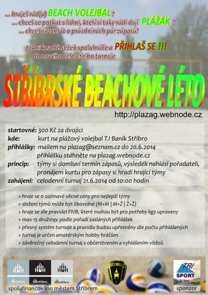 Celoprázdninová liga v plážovém volejbale Zvu všechny milovníky plážového volejbalu, kteří by si o prázdninách chtěli zahrát pár zápasů a poměřili tak své síly a dovednosti s ostatními přihlášenými dvojicemi k účasti v amatérské letní lize v plážovém volejbalu. Přihlásit se je možné do pátku 20.6.2014. Zajahovací turnaj proběhne 21.6. od 10:00 hodin na kurtu plážového volejbalu na stadionu TJ Baník Stříbro, ale není podmínkou se ho účastnit. Více informací najdete v přiloženém letáčku a nebo na webu http://plazag.webnode.cz Dne 17.06.2014:Lukáš Novák Pro reakci na článek musíte být přihlšen |