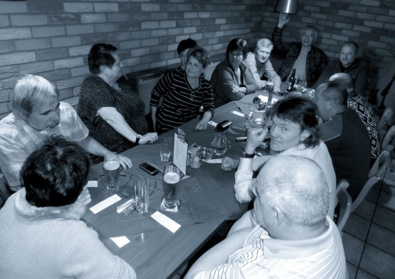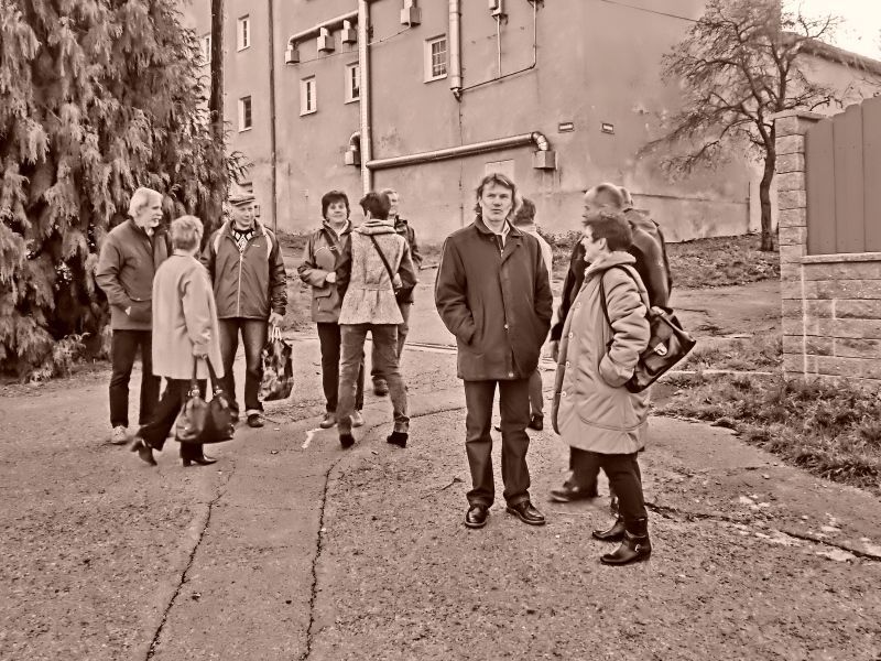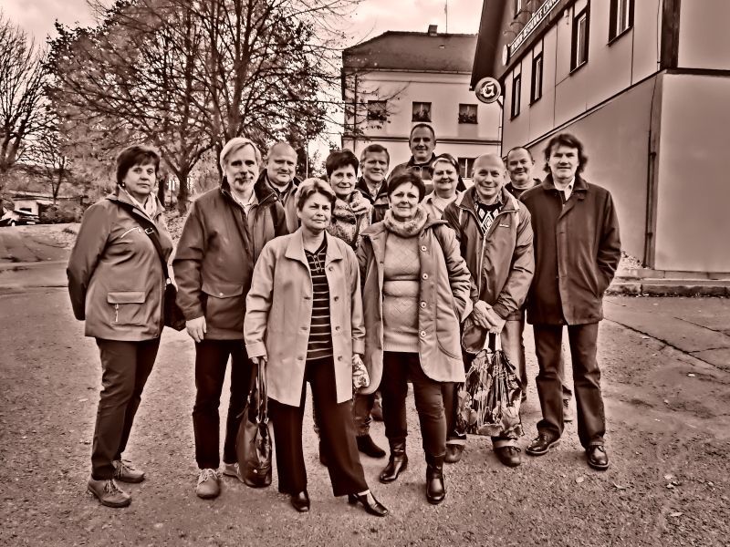 Rodáci Alešováci. Sešli se v sobotu 8.11.2014, mnozí po desetiletích. Sešli se na místě bývalé zahrady, jež patřila k bytovému domu v Havlíčkově ulici. Alešováci byla nezlatá, stříbrská mládež šedesátých let nejen z Alešovky, ale i z přilehlých ulic a uliček, kde se mohlo kliďo říkat U lišek. U lišek, kde dávaj dobrou noc, v zapadlém koutě zapadlého městečka šedesátých let. Měli sme vlastně všici štěstí, jak říkal jeden z nich, každých deset let to bylo tenkráte lepší. A šedesátá byla lepší. A, a konečná. Hráli se už tenkráte také Beatles a Kubišová, a Kryl, a světě div se, všichni viděli svět radostně, každé jaro bylo jaksi radostnější.. Byli ve věku, kdy se jim zapalovala lýtka a největší trest pro Ně bylo míti zaracha, tedy domácí vězení. Jejich svět byl tam, tam venku... Nebyly tenkráte mobily, nebyl jako teď úžasnej internet. Sociální sítě se spřádali na fotbalovým plácku před Sodovkárnou a později na volejbalovým hřišti a na Višňovce. A taky na koupacím rybníku a na bruslícím rybníku, ale každej z nich byl jinde i když blízko . V zimě tenkrát mrzlo až praštělo a taky padal sníh i tady v tom zapadákově a mlíkárenský potůček fakt zamrz až na dně.. Jak se tak procházeli tou Svojí alešovskou čtvrtí, najednou všichni vomládli. Vzpomínky se rojily jak včelí roje a královna paměť přicházela s každým dalším úlem tedy domem, s každou uličkou, tam bydleli ti a Ti, tam tamTi.., s novým shlukem vzpomínek, až uplně zapomněli, kde je vlastně ta hospoda zvaná pelyněk.. Dem to zapít k Vám na zahradu, tam co byly ty úžasný jabloně, to byly tenkrát jabka, ty už dneska nekoupíš.. (džejmsgrífy, kožáky, soudky..) Zvláštní to skupina. Lakýrník, lékařka, obchodník, horník, elektrikář, učitelka, účetní, správce ... Ne, nebyli to spolužáci, i když někteří tenkráte na základce ano, nebyl to sraz spolužáků, bylo to něco více. Byl to sraz rodáků. Rodáků z Alešovky. I když se zde vlastně nikdo z nich nenarodil.