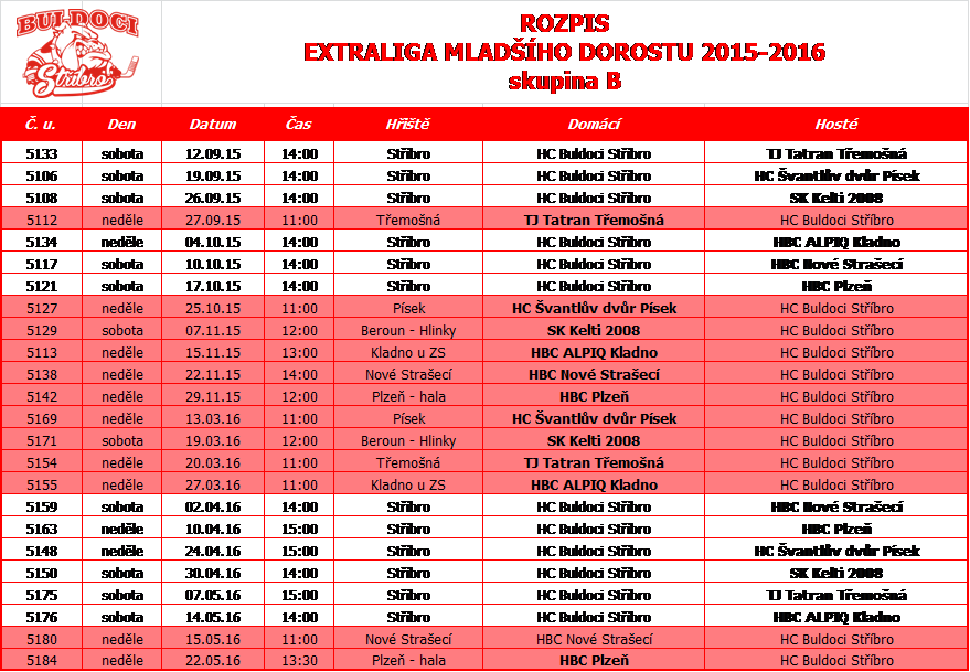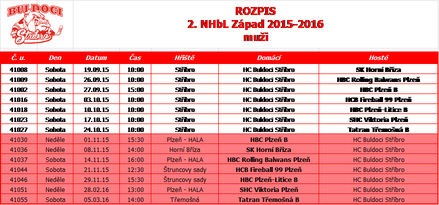Stříbrské Buldoky čeká další náročná sezóna. Jako první do ní vstoupí mladší dorost. Tým, jehož základní jádro vybojovalo ve finálovém turnaji MČR starších žáků celkově 5. místo, se postaví v sobotu 12.9. ve 14:00 hod. v prvním extraligovém zápasu proti tradičnímu soupeři – TJ Tatran Třemošná. Během září a října se ve Stříbře představí i ostatní týmy hrající ve skupině B Extraligy mladšího dorostu (HBC Alpiq Kladno, HBC Nové Strašecí, SK Kelti 2008 (Beroun), HBC Plzeň a HC ŠD Písek. O týden později hokejbalový A-tým odehraje premiérový zápas ve 2.NHbL proti SK Horní Bříza. V loňské krajské soutěži se tým umístil na celkovém 3. místě, ze kterého nakonec postoupil do vyšší soutěže. Jestli stejně dobře poradí se soupeři jako v předchozí sezóně, to se uvidí. Přípravka nastoupí tradičně do regionálního přeboru, ve kterém se postupně v této sezóně bude tým mladíků pod vedením Petra Němčáka připravovat na vstup do MČR mladších žáků. První turnaj přípravek se uskuteční 28. září ve Stříbře. Minipřípravku v této sezóně povede Jan Šůcha, který bude mít na starosti ten nejmenší hokejbalový potěr. I ten to tým by měl vstoupit v průběhu sezóny do otevřených turnajů minipřípravek. A v neposlední řadě náš hokejový A-tým čekají další těžké boje v Krajském přeboru skupiny A. Hráči se na domácím stadionu představí až v prosinci. Věříme, že i letošní sezóně nás přijdete podpořit na zimní stadion. Vaši Buldoci Dne 07.09.2015:Václav Šůcha Pro reakci na článek musíte být přihlšen |