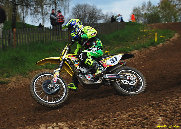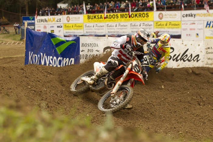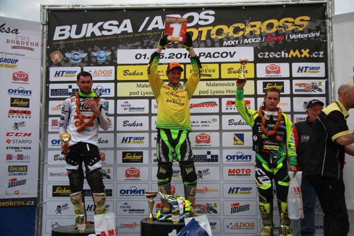 Naši motokrosaři skvěle otevřeli republikové mistrovství! Mezinárodní mistrovství ČR – BUKSA / ADOS MOTOKROS 2016 – má za sebou úvodní podnik, který v neděli 1.5. hostil Pacov na Vysočině. Zdejší trať patří v tuzemsku mezi nejoblíbenější mezi jezdci i diváky, takže se kompletní domácí špička utkala před velmi slušnou 4-tisícovou návštěvou. V hlavní třídě MX1 měl stříbrský region hned trojici závodníků. Těchlovického Rudolfa Weschtu (Suzuki, BV Racing) doprovodili piloti, které loni dlouho trápila zranění – černošínský Patrik Liška (Yamaha, HT Group Racing Team) a Petr Smítka (KTM, Hulho MX Team) z Pňovan. Již v dopolední kvalifikaci naši jezdci ukázali, že jsou připraveni soupeřit mezi nejlepšími. Smítka zajel nejrychlejší kolo, Weschta byl šestý a Liška desátý. Dobré startovní pozice se staly základem úspěchů v závodních rozjížďkách. Smítka s Weschtou se rychle protáhli ze strkanic a pádů na úvodní rovince, kde se zdržela řada favoritů včetně Lišky. Na čele si naši po pár kolech poradili s Fiňkem a ve velkém stylu začali vodit jezdecké pole. To vydráždilo ke stíhačce zejména obhájce titulu Martina Michka (KTM), který se sice v polovině jízdy prodral před Weschtu, ale na téměř bezchybného rychlíka Smítku nakonec nedosáhl. V 2. jízdě si chtěla řada favoritů napravit reputaci, ale ani Smítka s Weschtou nehodlali slevit ze svých ambicí a startovní nervozitu zvládli bravurně mezi nejlepšími. Nechyběli proto ve skupině pronásledující vedoucího Romančíka. Ten však po půlce jízdy vylétl z trati a přepustil čelo Michkovi. Petr Smítka se ke konci vytrvalým tlakem prosadil na druhé místo, ale na lídra již nezaútočil. Rudy Weschta si za této situace pohlídal bezpečné dojetí na šesté pozici, která zaručovala celkový bronz. Výtečnou bilanci mladých Západočechů korunoval celkovým stříbrem Smítka. Po úvodní smůle dobrý dojem zachránil i Patrik Liška, když 2. jízdu dokončil na 10. pozici. Šampionát pokračuje 5.6.2016 v nedalekém Kramolíně u Nepomuku.
