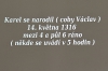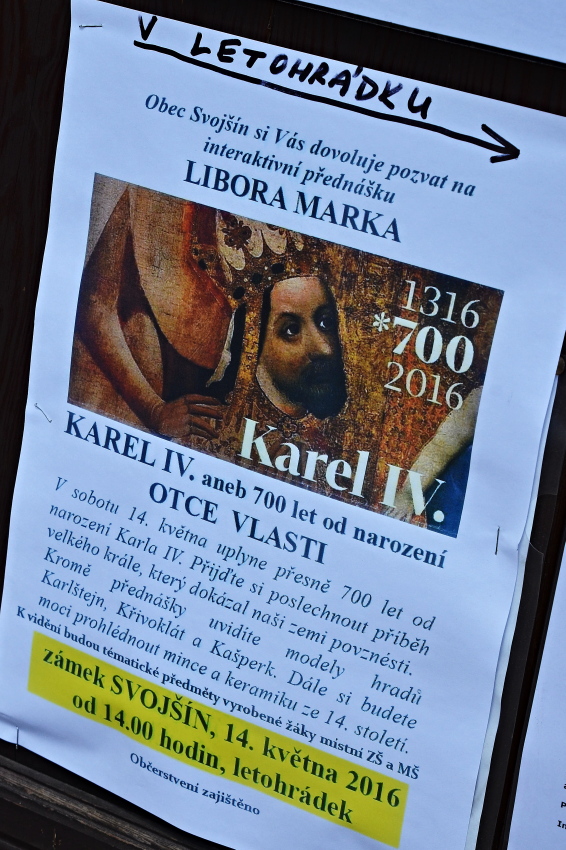 14. května je to přesně 700 let co se narodil Ve Svojšíně bylo 14 května ve 14 hodin vše vzorně připraveno na příjezd Karla IV, otce vlasti České. Zámecké svojšínské princezny jenom kvetly, královská hostina byla připravena v zámeckém letohrádku, zvíce několika druhů jiskřivě čerstvých chlebíčků, výborné kávy, čaje a vody pramenité i nějaká ta pinta pivní by se našla... , také korunovační klenoty byly umístěny poblíže, tedy královi a císaři na dosah, jen Bušek z Velhartic to trošku popletl a aby pohádkovému příběhu nebyl konec , tak obec Svojšín měla jednu chvíli dokonce dva starosty.. Návštěvníci s údivem sledovali mimořádnou a vyjímečnou přednášku pana Libora MARKA z Přimdy, o životním příběhu Karla IV.,tedy Václava, jehož čtyři manželky mu porodily na jedenácte potomků.. Přednášku mimořádně zajímavou, takovou tu, co přednáší člověk, který je historií zcela pohlcen a podle reakcí posluchačů, a precizně zpracovaného interaktivního audiovideo doprovodu se jednalo opravdu o mimořádný a slavnostní zážitek. Diváci se dozvěděli mnoho zajímavého o životě tohoto muže a popisovat zde jeho životopis by bylo na dlouhé povídání... V druhé části přednášky se posluchači dozvěděli o vztahu Karla IV. k našemu regionu, Stříbru, Přimdě a hlavně Tachovu, což není až tolik známo.. Závěrečná slova pana Marka provázel opakovaný dlouhý potlesk. Veliké díky! Poděkování také všem svojšínským organizátorům ! Bylo to fakt skvělý . Dne 15.05.2016:Jan Picka Pro reakci na článek musíte být přihlšen |