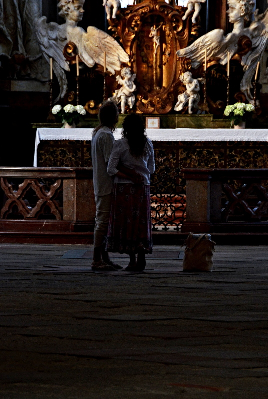 Tihle dva milenci Tihle dva tam stáli nehnutě v objetí už když jsem přicházel.. V zapadajícím večerním slunci vypadali jako živé sousouší.. Tajemné světlo, osvítilo tajemný prostor. Všude tajemné ticho. Jistě to znáte. Ocitnete se náhle v nějakém prostoru sami. Zvláštní pocit. Tajemný. Ti dva se ani nepohnuli, dívajíce se na zapadajícím sluncem ozářený oltář.. Přiznám se, zpočátku sem si jich ani moc nevšímal, ohromen zvláštní hrou světel.. úžasné.. po hodině focení, když už jsem odcházel zcela u vytržení, jsem je opět zahlédl. Stáli tam pořád. Nehnutě. Jejich pohledy upřeny na zářící oltář... ----------------------- Klášterní kostel Kladrubského kláštera Nanebevzetí panny Marie (Národní památkový ústav), se otevřel návštěvníkům 10.6. ve večerních hodinách. Patří mezi nejkrásnější chrámy široko daleko. Kladrubští, a vlastně My všichni máme býti na co hrdi. Bratři Benediktýni návštěvníkům opět ukázali něco ze svého umu. Hru světel. Tolik krásy bylo i pro Ty Dva moc.. dobrou noc... Dne 12.06.2016:Jan Picka Pro reakci na článek musíte být přihlšen |